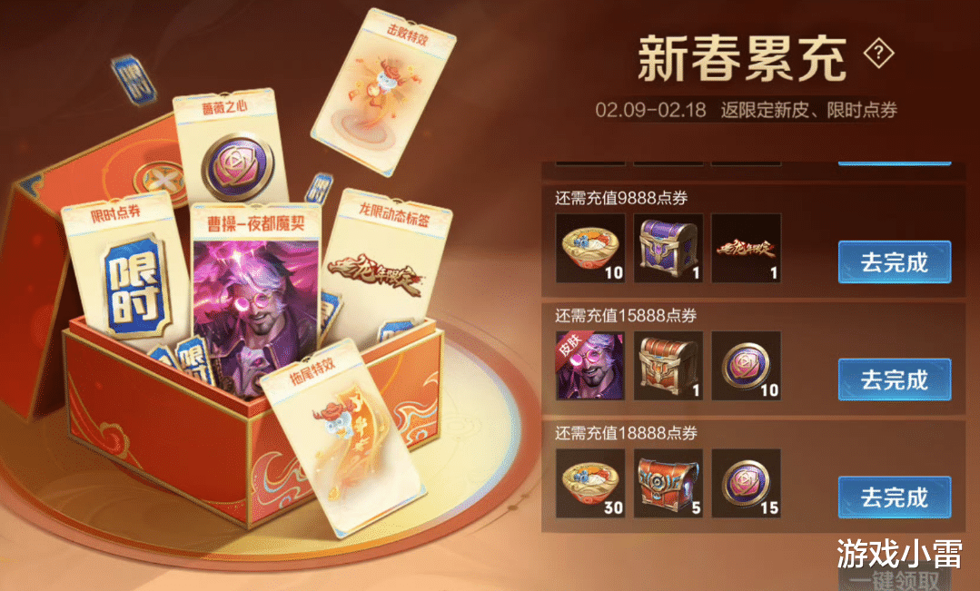 除此之外,眼看新春即将到来,那在新春必不可缺少的,也就是累计充值限定皮肤的上新了,毕竟前两年都有累计充值专属限定,并且都是冷门的英雄,例如,盘古和曹操,所以今年就王者知名博主爆料,仍然是一位特别冷门的英雄,所荣获的新春累计充值限定,有望是东皇太一这位英雄,品质仍然也是史诗级别,东皇太一是十分冷门的一位英雄,冷门地位基本和曹操以及盘古一致,再加上也有一整年没有荣获过新皮肤了,也确实该推出一款高质量新皮肤了,这款新春累计充值史诗限定就很合适,此级别的皮肤参与专属活动,累计充值15888点券即可直接领取,并且据说东皇太一的这款皮肤质量倍高,所以有兴趣的玩家,留15888点券给其巨赚不亏。