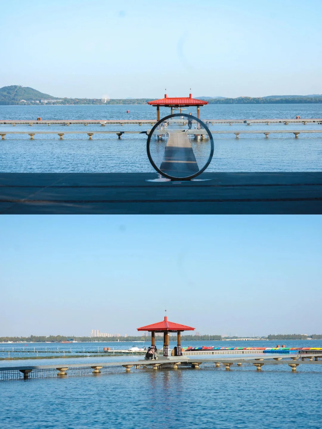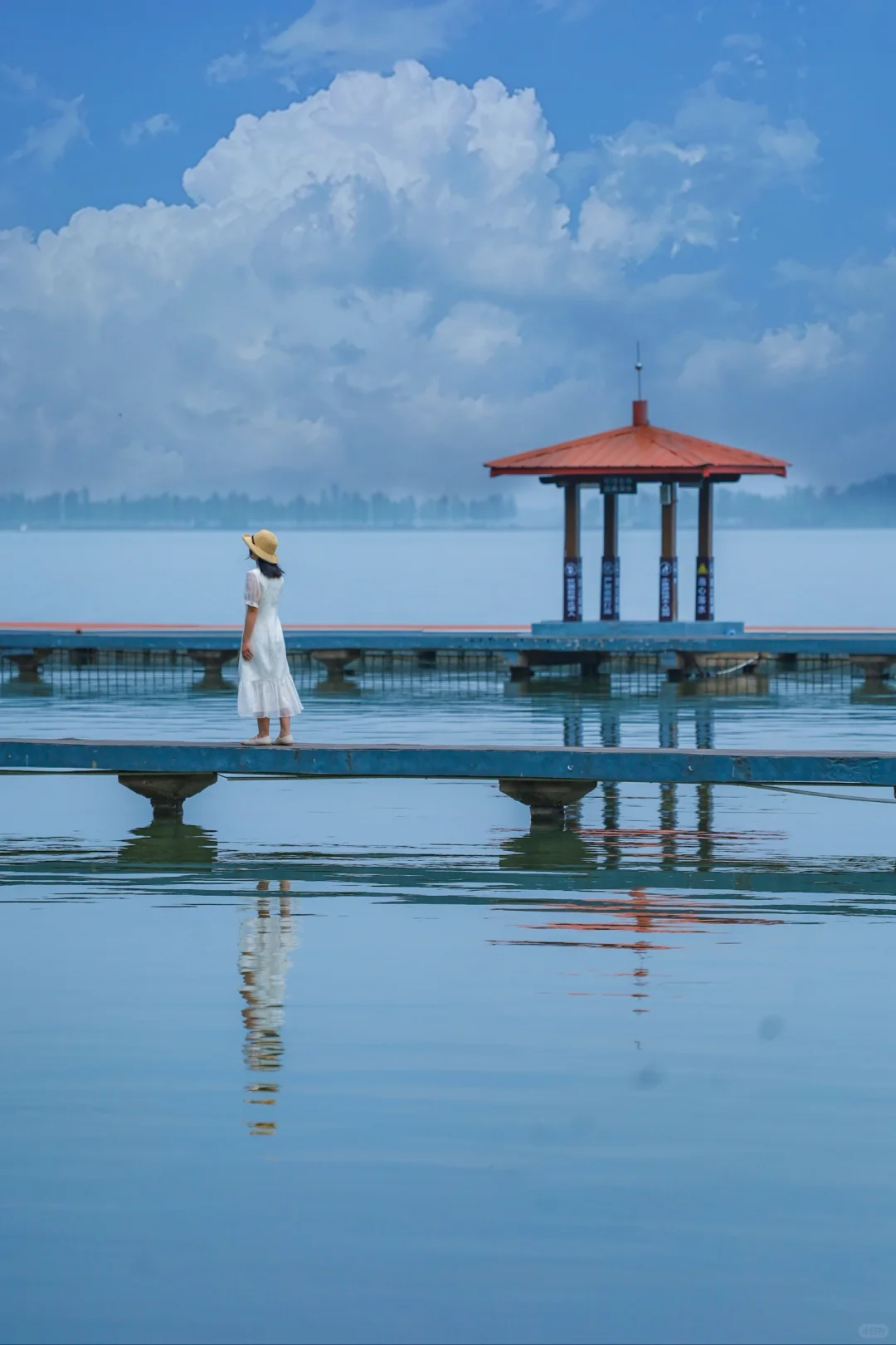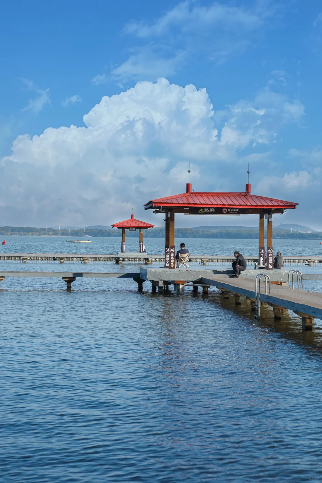 来武汉去东湖别只知道去磨山啦,这条被低估的citywalk路线真的小众又舒适 沿途可以逛博物馆、看海喝咖啡☕️走梧桐大道、赏蔷薇花🌸真的超chill! 📝citywalk路线 湖北省博物馆—听涛大门—苍柏园—听涛泳场阁—行吟阁—碧潭观鱼—梨园咖啡小镇 1⃣湖北省博物馆 需要身份证预约,建议早点去看越王勾践剑,去晚了人多 逛完省博可以去附近鹤公馆吃饭,中式风餐厅环境幽静,露台吃饭看湖景很惬意 2⃣苍柏园 走在洒满阳光,光影斑驳的梧桐大道,无比悠闲 3⃣听涛泳场 晴天可以看海特别美,栈道拍照📷很出片!湖边可以喝咖啡 4⃣碧潭观鱼 有很多锦鲤拍,旁边水杉绿道也很美 5⃣梨园 现在咖啡小镇的蔷薇开爆了,搭配建筑超级浪漫