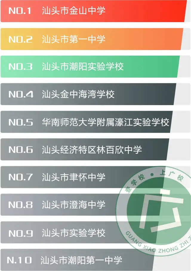 这是汕头市综合实力排名前十的高中学校,排名条件根据以下四点:
