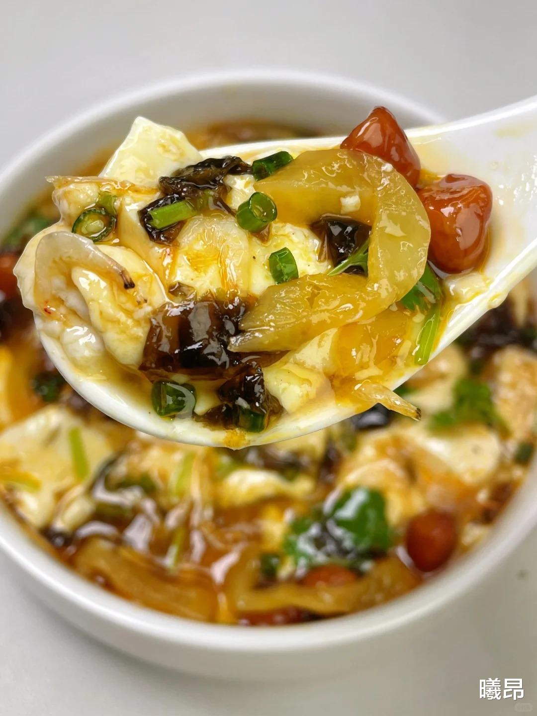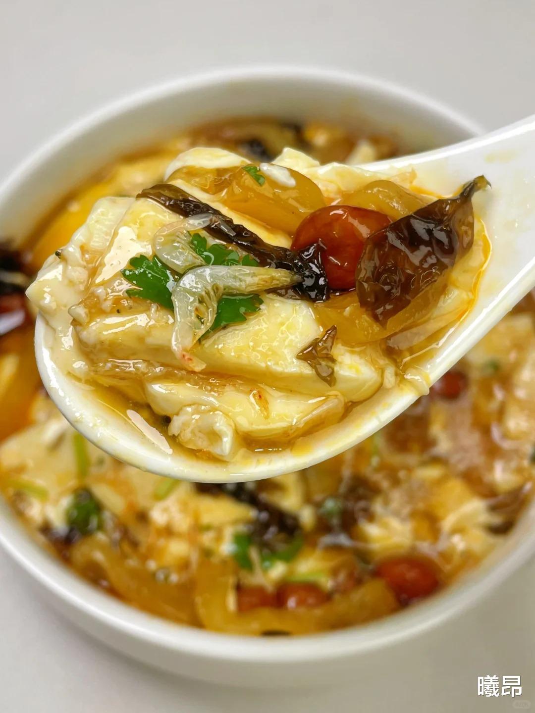 刚做好的咸香豆腐脑,豆腐嫩到轻轻一抿就化,卤汁裹着香菇、木耳和蛋花,每一口都鲜咸适中,早餐吃一碗,搭配半块全麦馒头,低卡又饱腹,撑到中午都不饿。做法简单还不用复杂工具,新手快试试,保证比早餐店的还好吃,从此再也不用早起买豆腐脑啦!