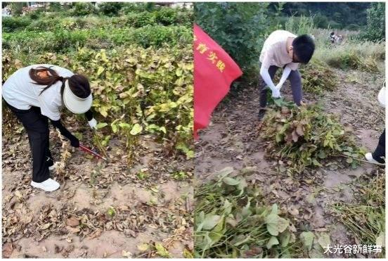 “再往这边来一点”“先从这里开始割芝麻树”“注意黄豆别撒地里了”9月25日,在湖北省京山市绿林劳动教育基地,同学们的欢声笑语和互相叮嘱的声音交织成了一首“丰收之歌”。武昌理工学院1500余名大学生正在田间“劳作”,刨花生、收割芝麻、除杂草、收黄豆......这是他们的劳动教育课。