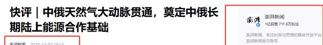4.澎湃新闻:《快评|中俄天然气大动脉贯通,奠定中俄长期陆上能源合作基础》-2024-12-2