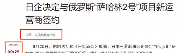 2.央视新闻:《日企决定与俄罗斯“萨哈林2号”项目新运营商签约》-2022-8-25