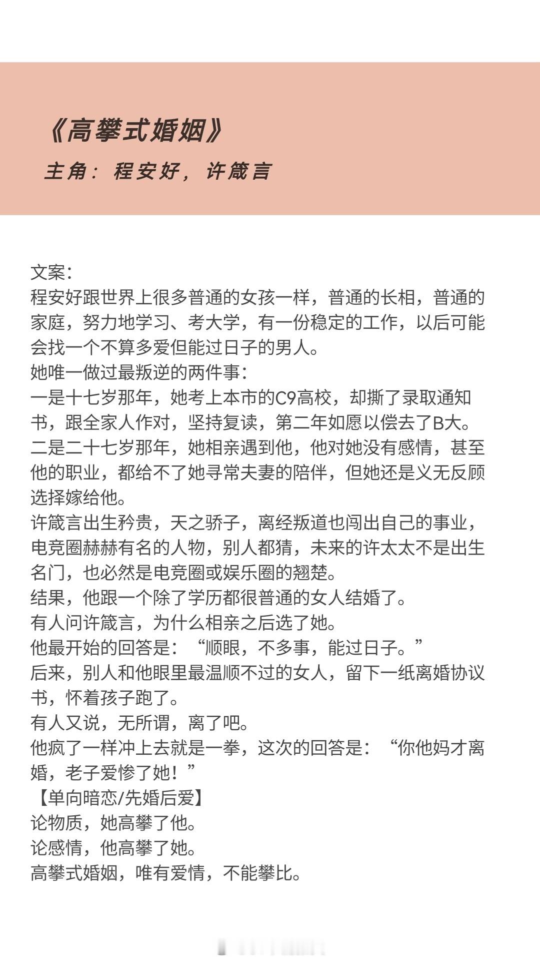 [吃瓜]《高攀式婚姻》by楠阿珠