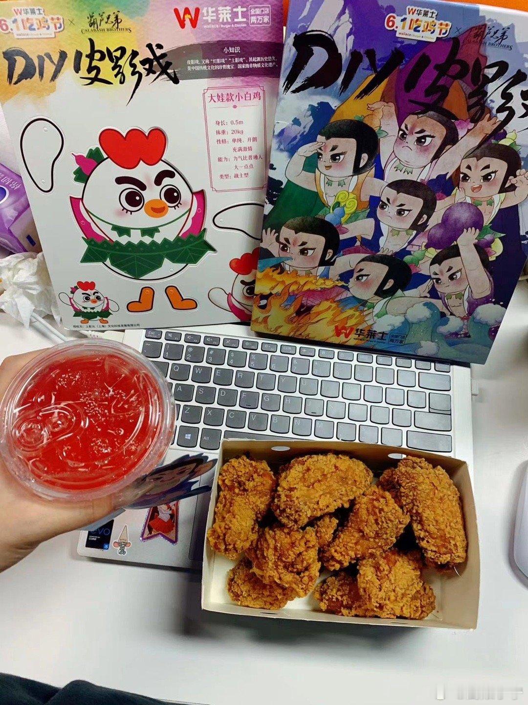 葫芦娃承载了80,90,00三代人的童年回忆。这次去吃华莱士,竟然有机会得六一葫芦娃联名DIY皮影盲盒,🤩瞬间期待拉满!哈有[打call]新品冰镇西瓜🍉风味气泡饮和快乐吃全鸡三次卡活动。