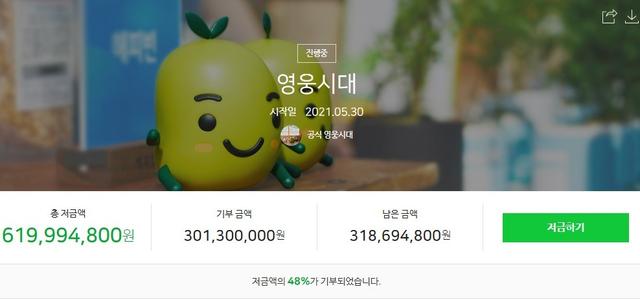 此前,17日,“英雄时代”在官方粉丝咖啡馆宣布,他们将在20日之前通过在线捐款网站“快乐豆”筹集少量资金,19日,《英雄时代》筹集并捐赠了3亿多韩元。歌手林英雄17日还通过爱心果实社会福利公益金以“英雄时代”的名义为遭受暴雨伤害的人们捐赠了1亿韩元。林英雄的经纪公司Fish Music也捐款1亿韩元。
