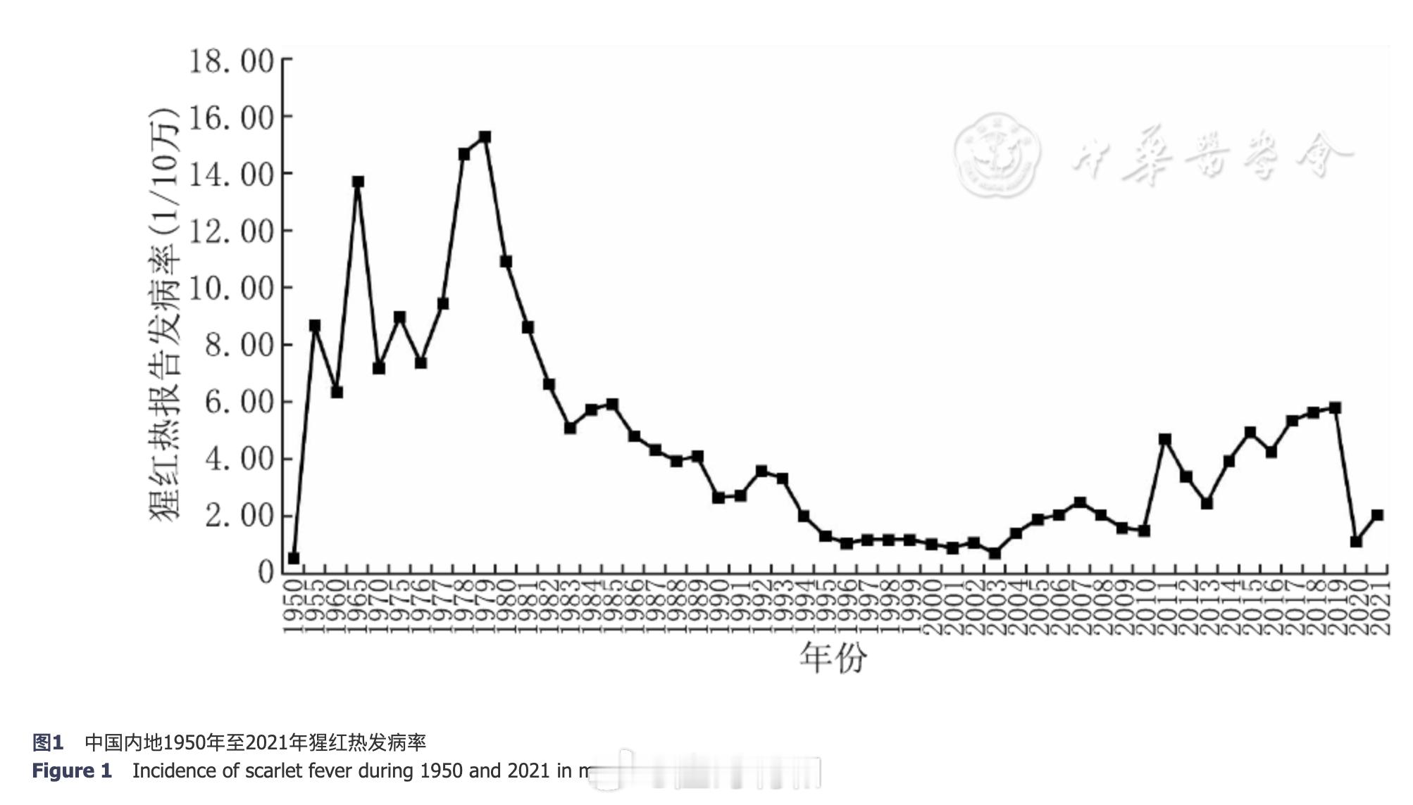 从全球范围来看,猩红热存在周期变化趋势。中国内地从2011年~2019年呈周期性上升趋势(图2),发病率上升至上世纪80年代水平(和GAS毒力改变、抗菌药物使用、人员流动以及监测水平变化都有关),2020年因新冠防疫发病率大幅下降。中国香港在2011年也出现过猩红热爆发,发病率较以往上升9倍。
