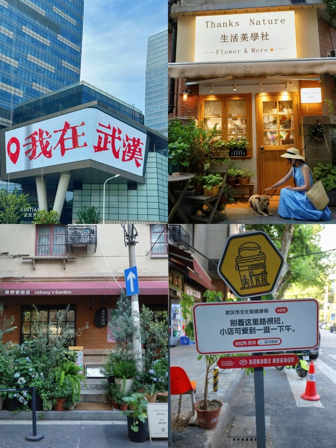 初夏的武汉蓝天白云💨绿意盎然🌿光影斑驳很适合江边citywalk 分享一条我百逛不腻的徒步路线,内含精华旅游打卡地和宝藏小店 📝路线安排 武汉天地—胜利街—汉口江滩—郝梦龄路 1⃣武汉天地 吃喝玩乐一条龙,可以打卡3D大屏“我在武汉” 2⃣胜利街 从洋房汤馆过马路,有不少充满历史气息的汉口老建筑,汉口新四军旧址就在这 参观完旧址被对面蓝色风铃小门吸引了,好适合街拍 走进去发现是家小众设计师品牌店—由走DIXOING 衣服偏日系又不失设计感,穿过去走到隐藏在洋房里的小院很chill,别有洞天的感觉 3⃣汉口江滩 超多经典拍照机位📷绿野仙踪般的法式庄园;藤树牵花和长江二桥同框;绿意围绕的的日系小木屋🌿仿佛走进宫崎骏的夏天 4⃣郝梦龄路 武汉很有小资情调的一条街,去了无数次都逛不腻,有超多宝藏小店适合拍照,有点像鼓浪屿
