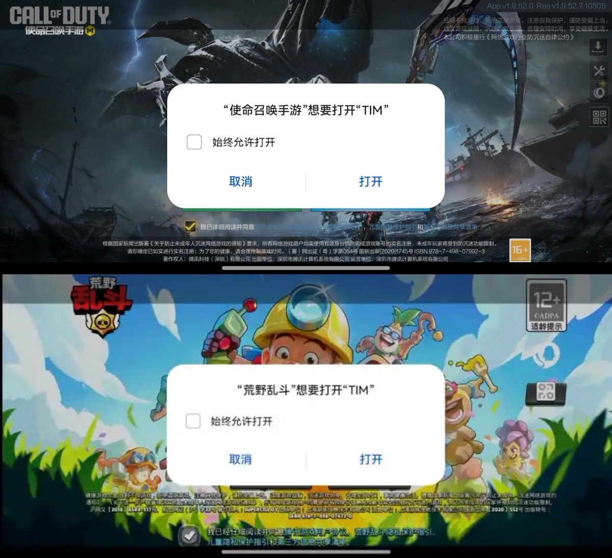 除了查看和处理文档,TIM还能辅助登录部分通过卓易通安装的腾讯游戏,比如使命召唤手游、荒野乱斗等。选择QQ登录后,授权过程会自动跳转到TIM,无需再频繁扫码登录,非常省事。