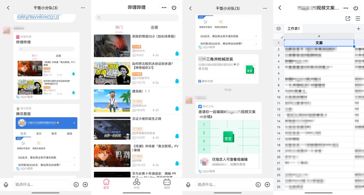 之后在TIM里点击他人发来的腾讯文档QQ小程序,或查看群文件,就能正常查看和编辑文档了。这个方法同样也可以打开哔哩哔哩等QQ小程序。