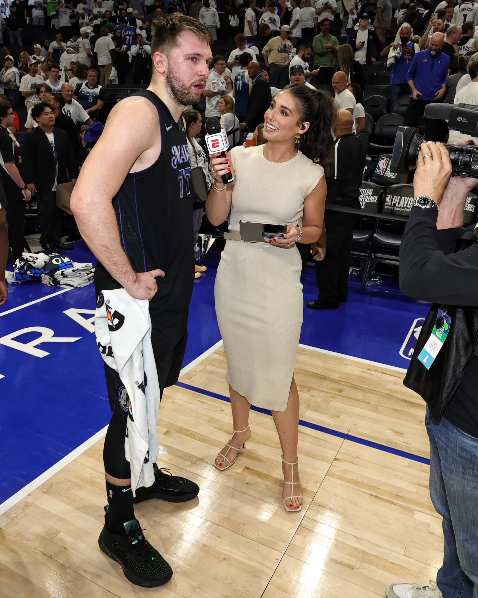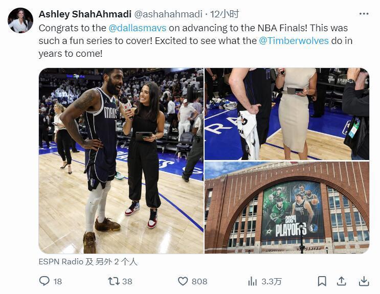 美女记者晒照:恭喜独行侠晋级总决赛!报道西决很有趣