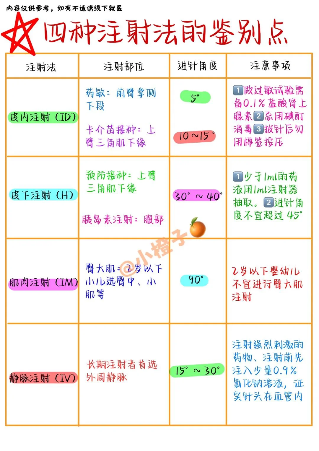 医学生笔记 护考资料 初级护师 基础护理学 护士 护士资格证考试 知识薯 健康薯 我的健康生活 小橙子🍊备考扎记 注射 卡介苗注射角度是5还是10~15度?[PK]