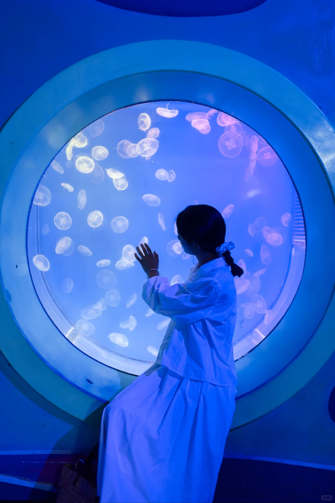 这个夏天总要去一次海洋馆吧 闯入蓝色梦境,治愈又浪漫 拍照超有电影感 📍武汉极地海洋公园 🚄地铁3号线宏图大道F2口直达 省力游玩路线👉 1⃣极地王国(白鲸馆、企鹅馆) 2⃣海洋王国(海底隧道、小型鲨鱼) 3⃣恐龙岛(会动的霸王龙) 4⃣小动物王国(鹦鹉、环尾狐猴、小熊猫) 5⃣球幕影院(360度3D沉浸观影身临其境很震撼)6⃣机械王国(游乐设施) 6⃣奇幻水母王国(水母万花筒) 每天不同时段有表演,《极地奇缘》必看!精彩绝伦的人鲸共舞超震撼 美人鱼表演也强烈推荐!美人鱼水中翩翩起舞太美了仿佛置身童话,可以提前去等着 📝出片TIPS 建议避开节假日,早上9点一开门就去,或是等下午快毕园6点;表演开始的时间人也少很多每天有很多场不用担心错过 拍照📷穿白色衣服更出片,里面环境比较暗可以自带补光灯