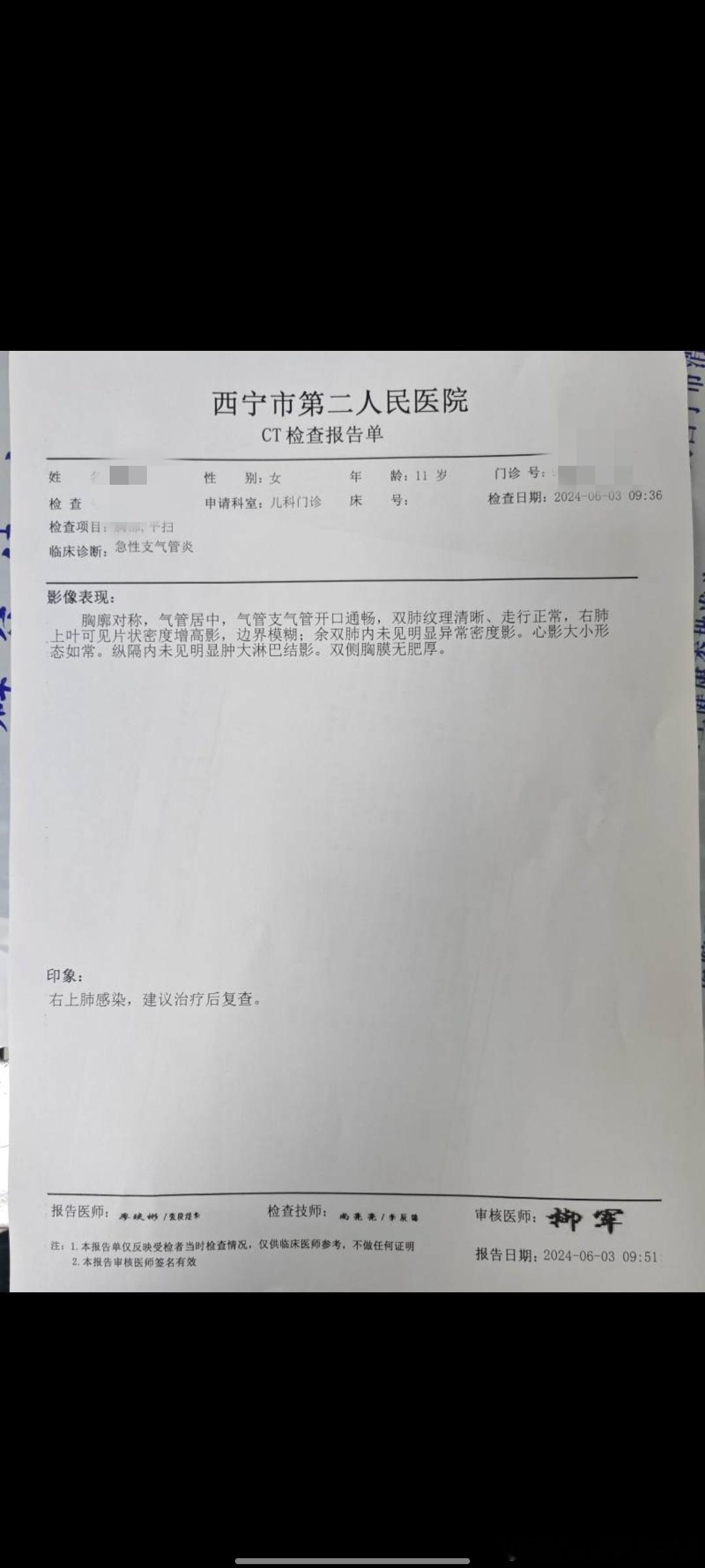 我看好转了很多就没让她拍片了,谁知道又反复,家长领去一拍片,肺炎!