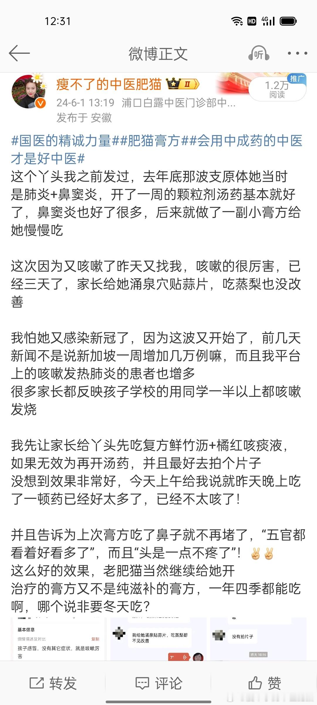 这个1号发的丫头还是肺炎,本来我想着中成药不好转就开汤药并让家长带去拍片,后面吃复方鲜竹沥+橘红咳痰液好转了很多