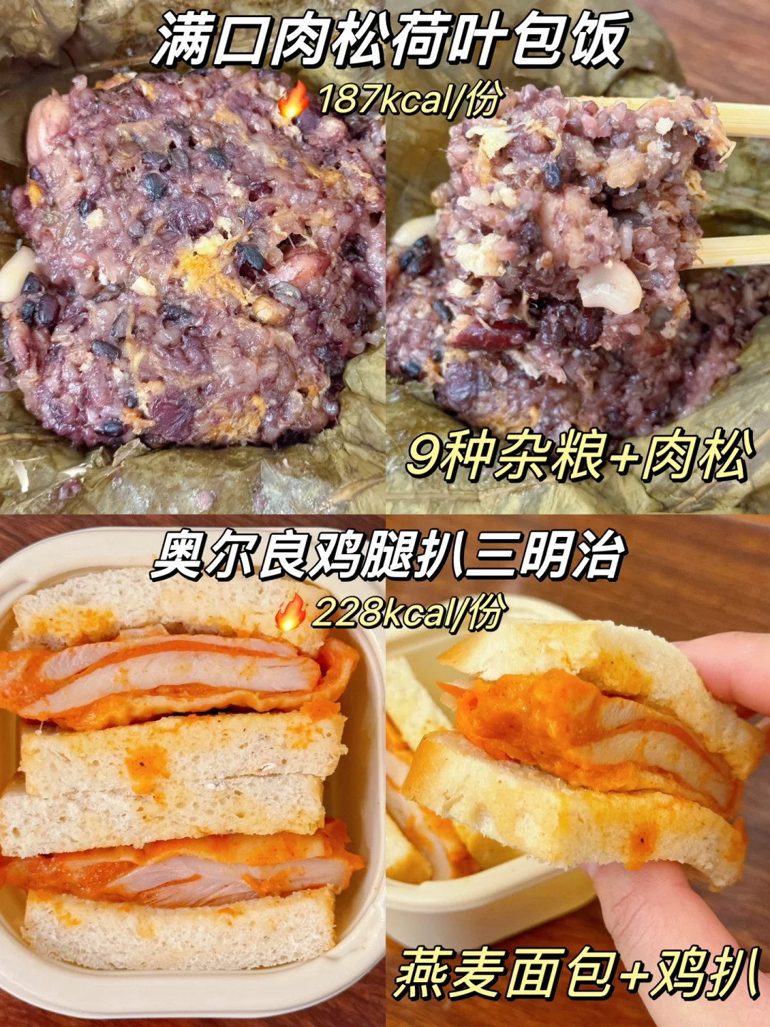 ☑️满口肉松荷叶包饭:🔥187/份,蛋白质7g/份