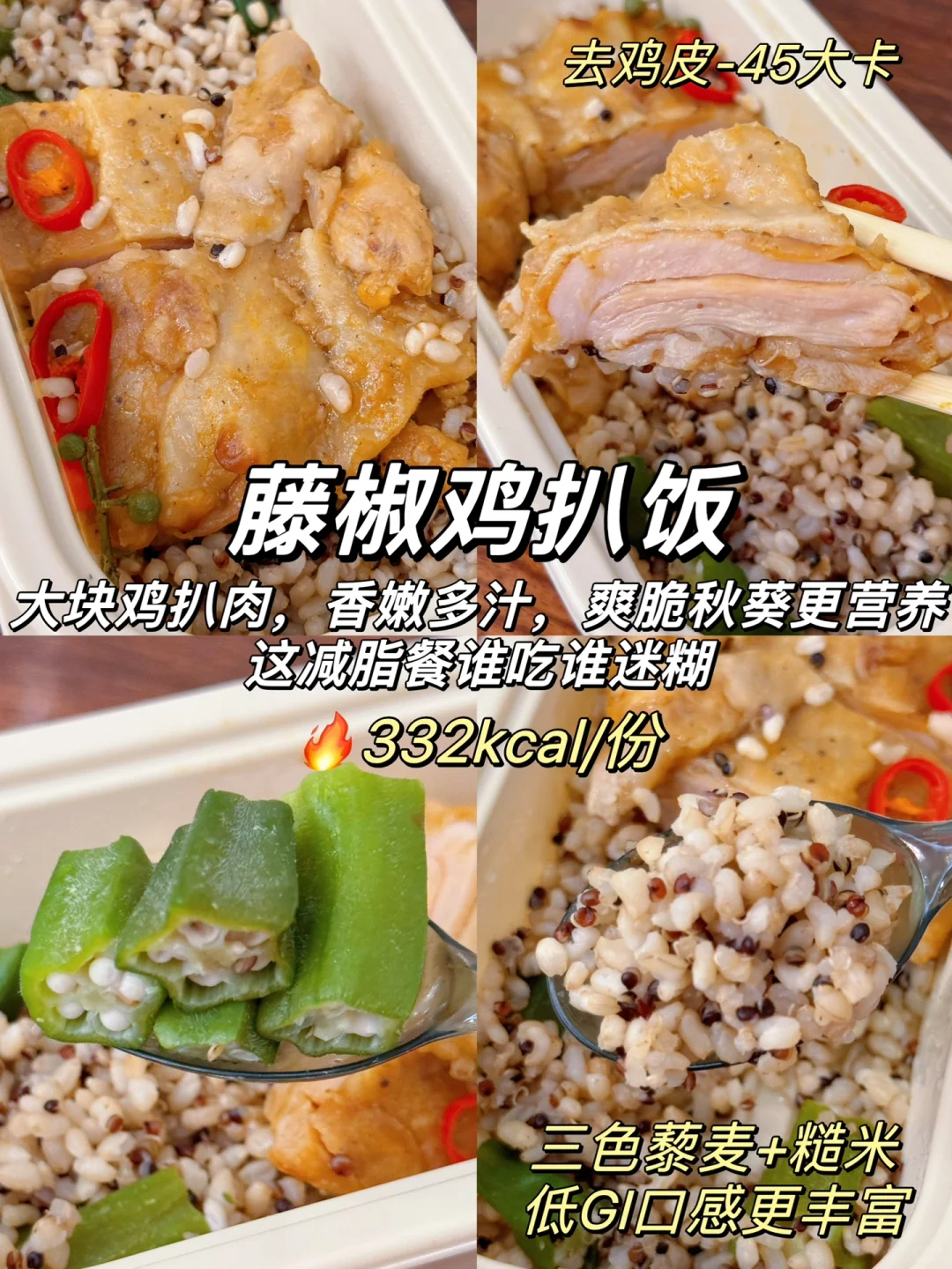 ☑️藤椒鸡扒饭:🔥332/份,蛋白质21g/份
