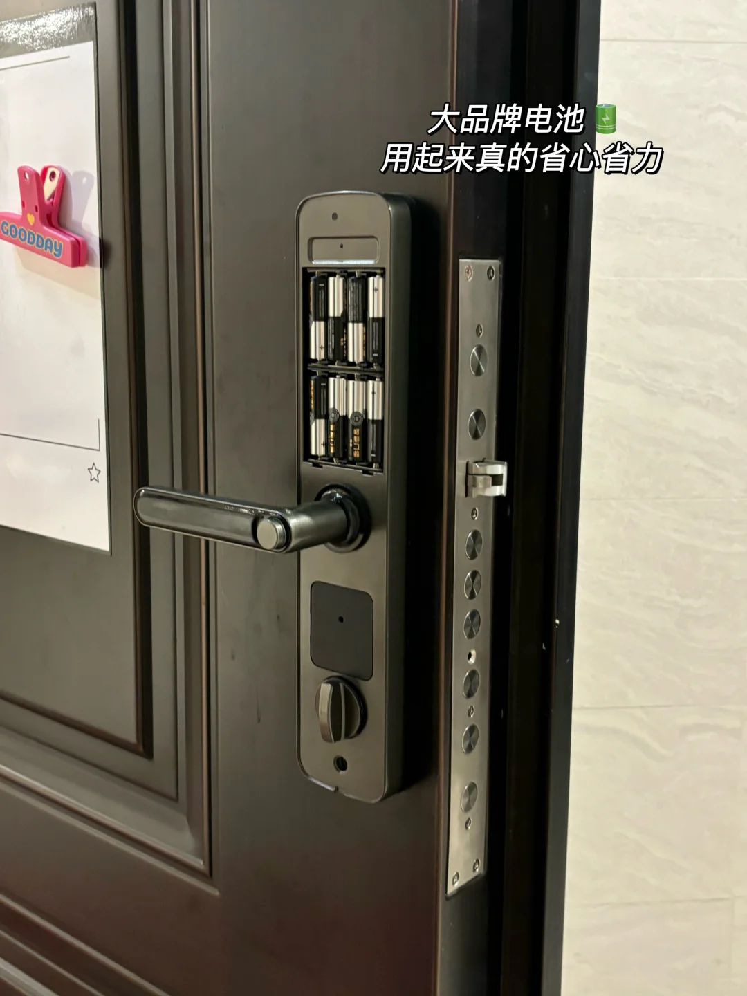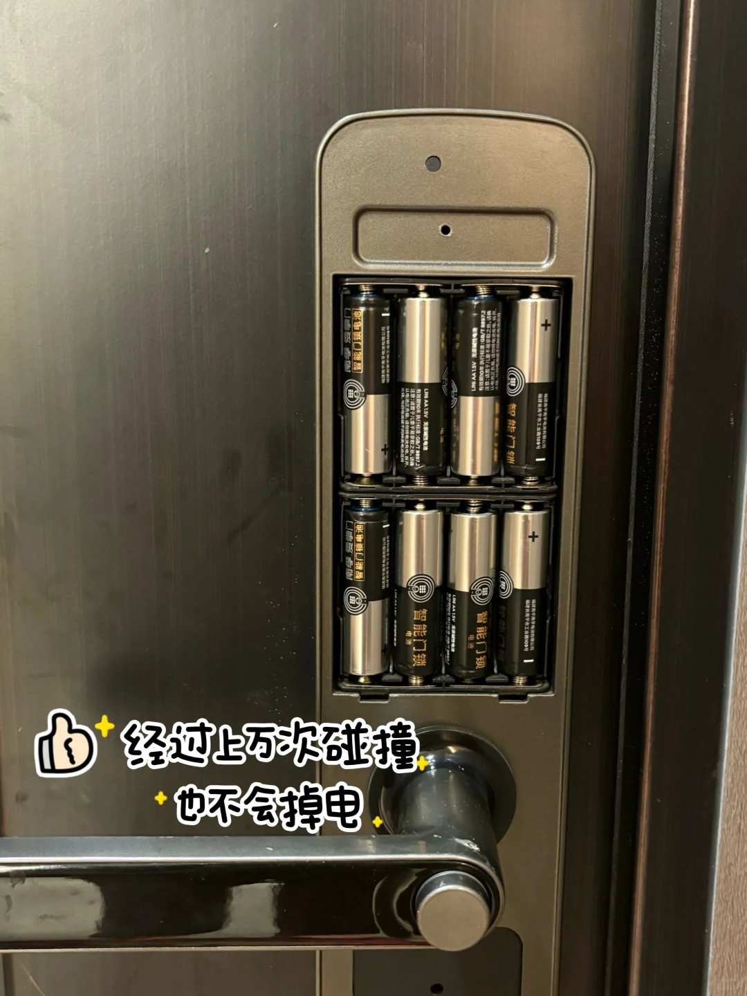 他的电解液还是独家配方,-20°C到60°都可以使用,防寒又防热,平时开关门频繁碰撞也不会掉电或漏液腐蚀智能锁,用起来超安心💗