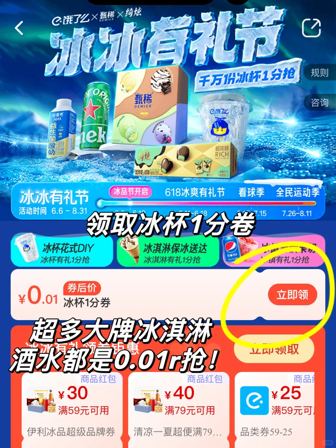 还有超多大牌冰酒水、冰淇淋1分抢