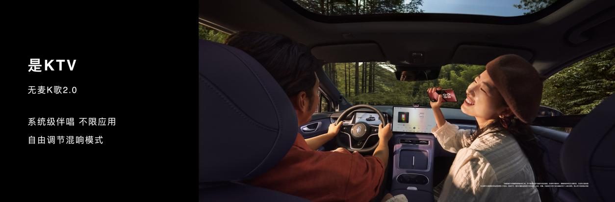 娱乐场景方面,无麦K歌2.0 系统级伴唱打造移动娱乐空间,HUAWEI MagLink车载屏 支持双屏独立娱乐和前后排共同创作 ,让座舱随时化身影院/画室,满足家庭互动需求。