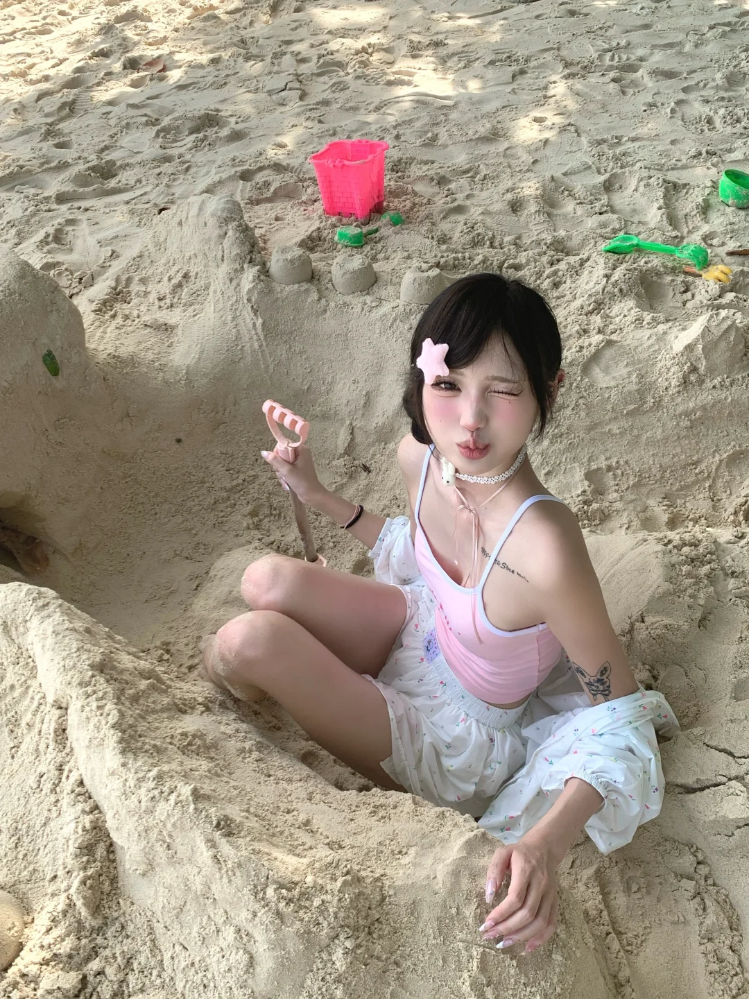 海边拍照日系少女,沙滩美女,估计是手机没电了才会找我帮忙拍