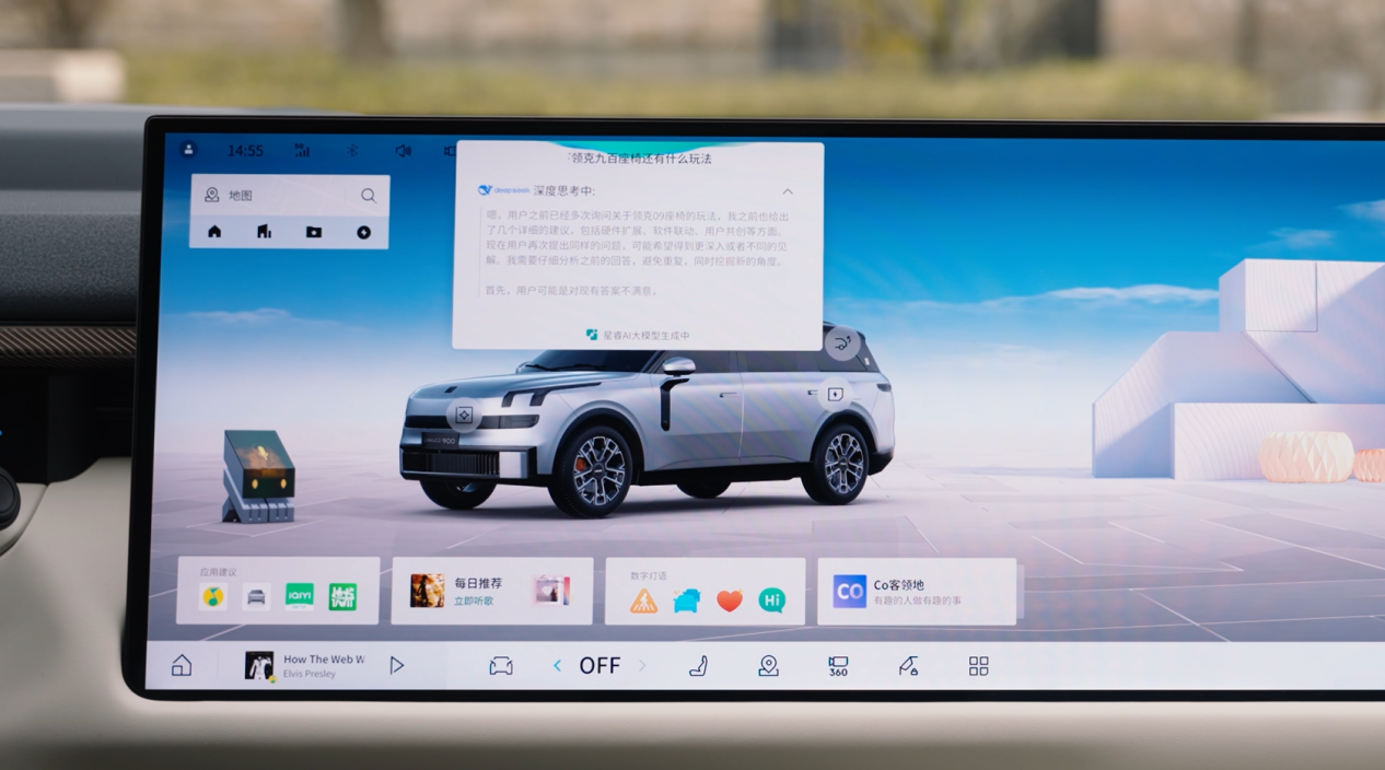 智能化配置是领克900的重要亮点。搭载双8295芯片和Thor算力芯片,总算力达700TOPS,为辅助功能提供充足算力支持。全系标配激光雷达,结合千里浩瀚H5/H7辅助系统,为全员出行提供安全保障。车机系统Lynk Flyme Auto支持语音大模型及多屏交互,操作顺畅便捷。