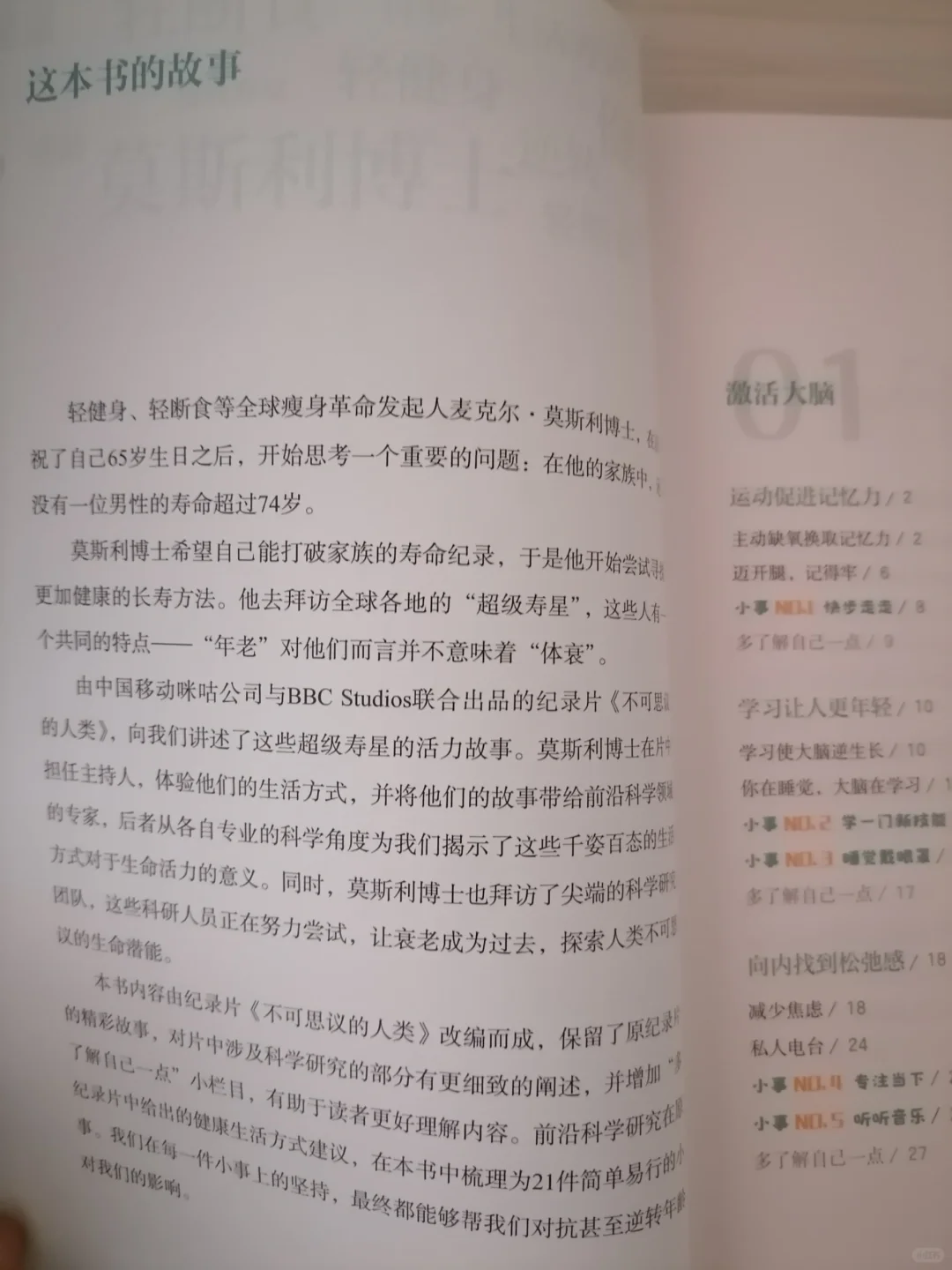 《不可思议的人类》是一本极具启发性的书。它让我们认识到,衰老并不是不可抗拒的自然规律,我们可以通过自己的努力,影响甚至改变衰老的进程。这本书为那些希望在未来保持活力和健康的人提供了具体的行动指南和研究支持。