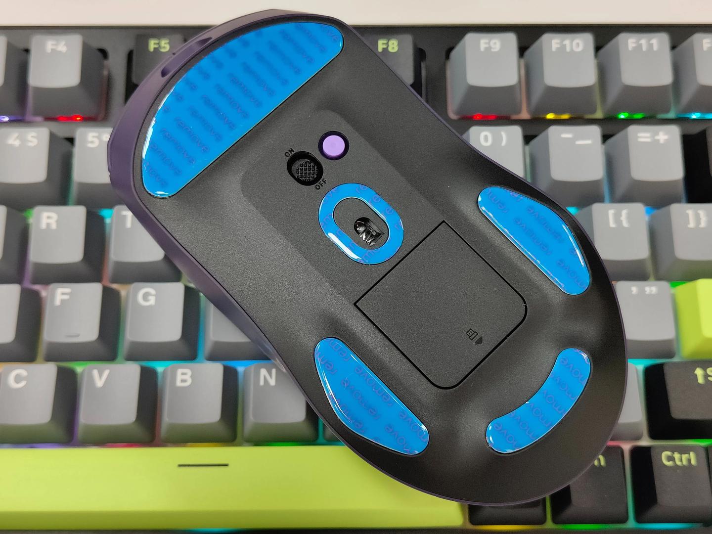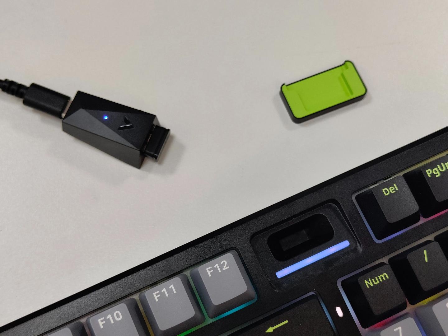最戳我的是右上角的 “时空幻境仓”,带磁吸盖板,平时把 2.4G 接收器放里面,再也不怕丢了,仓体前面的灯带还能提示电量,红色闪烁是低电、绿色是满电,不用瞎猜什么时候该充电。