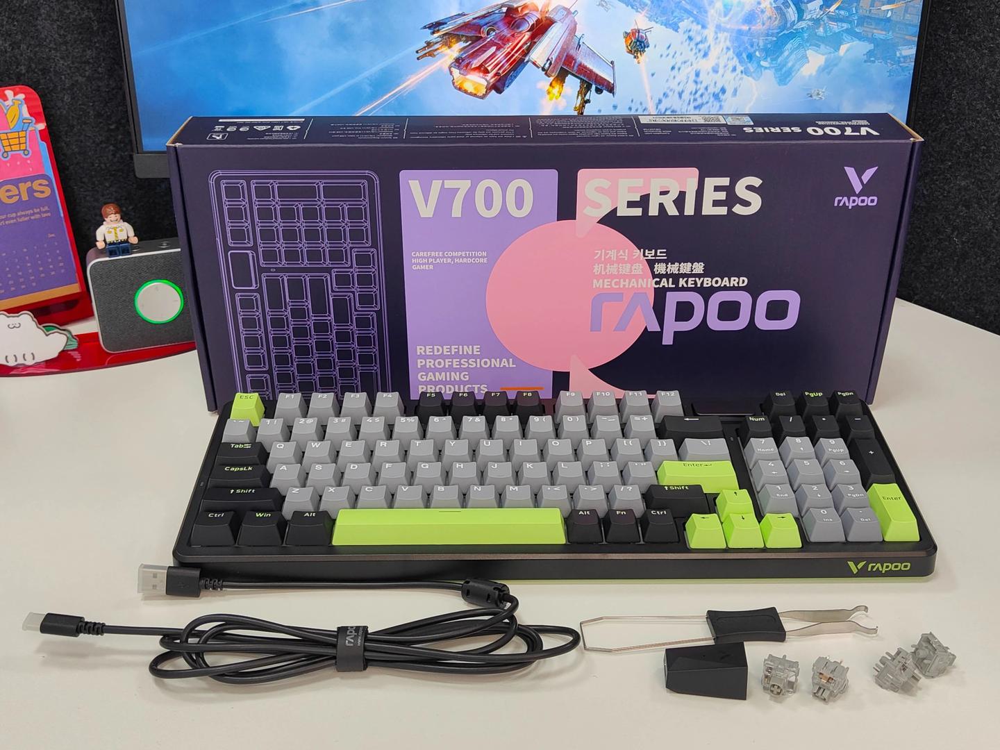 作为每天敲字 + 打游戏的主力,敲击手感太重要了!V700DIY-98 长续航版用的是 Gasket 板簧结构,定位板和 PCB 板靠高韧性硅胶颗粒固定,不是硬邦邦的刚性连接,按下去的触感特别柔和均匀,还能减少共振。配合7层消音堆叠填充,比市面上常见的多了两层缓冲,按键声音是闷闷的 “噗噗” 声,午休时敲代码、摸鱼打游戏都不怕吵到同事。