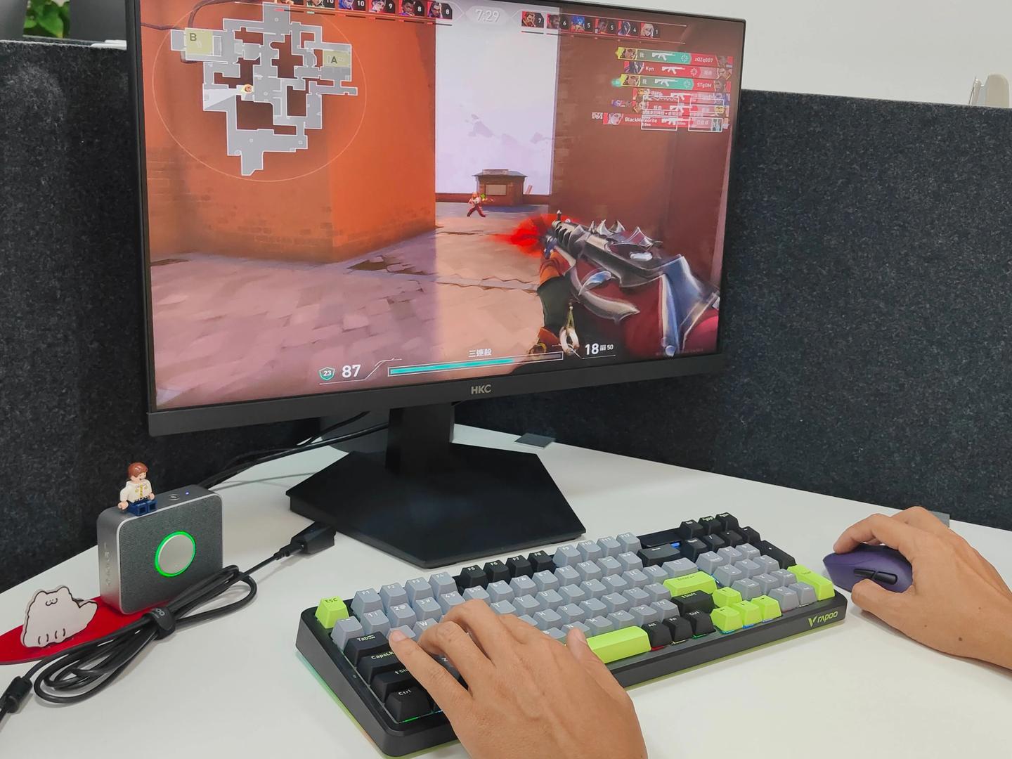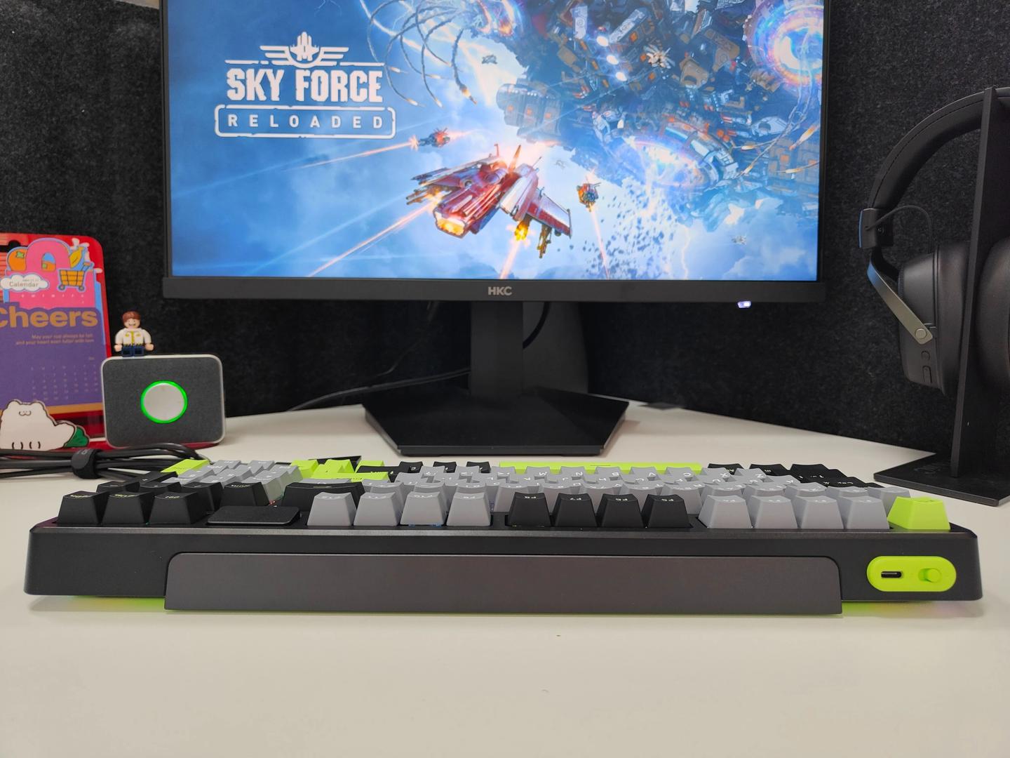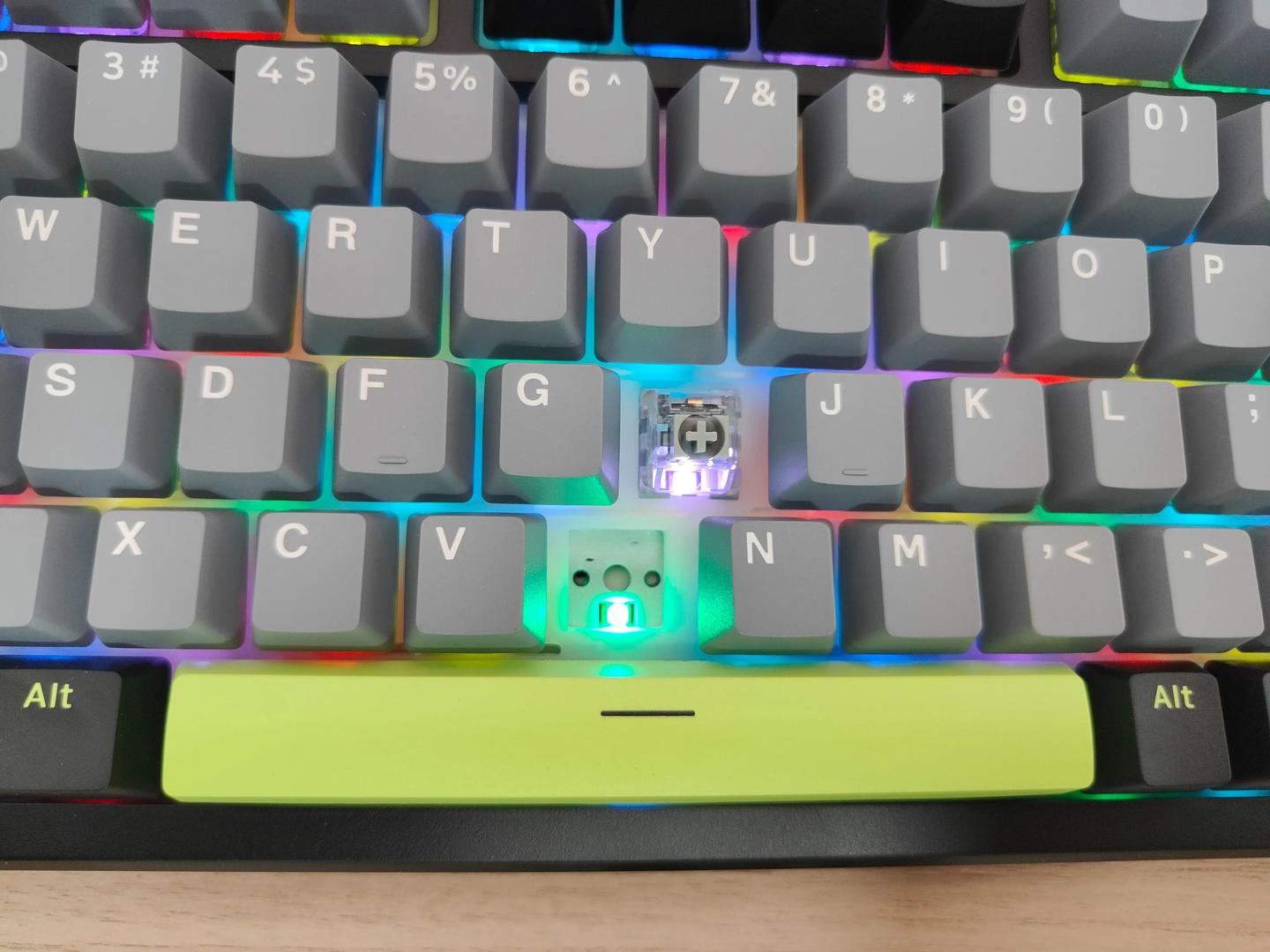 轴体选的是凯华定制快银轴!触发压力才 35±10g,触发行程 1.2±0.4mm,轻轻一按就触发,打 FPS 游戏时急停、开镜、射击的响应快得离谱。而且回弹干脆有力,没有粘滞感,连续打四小时游戏手指也不酸,平时敲代码时按起来也很轻快,不会觉得费力。