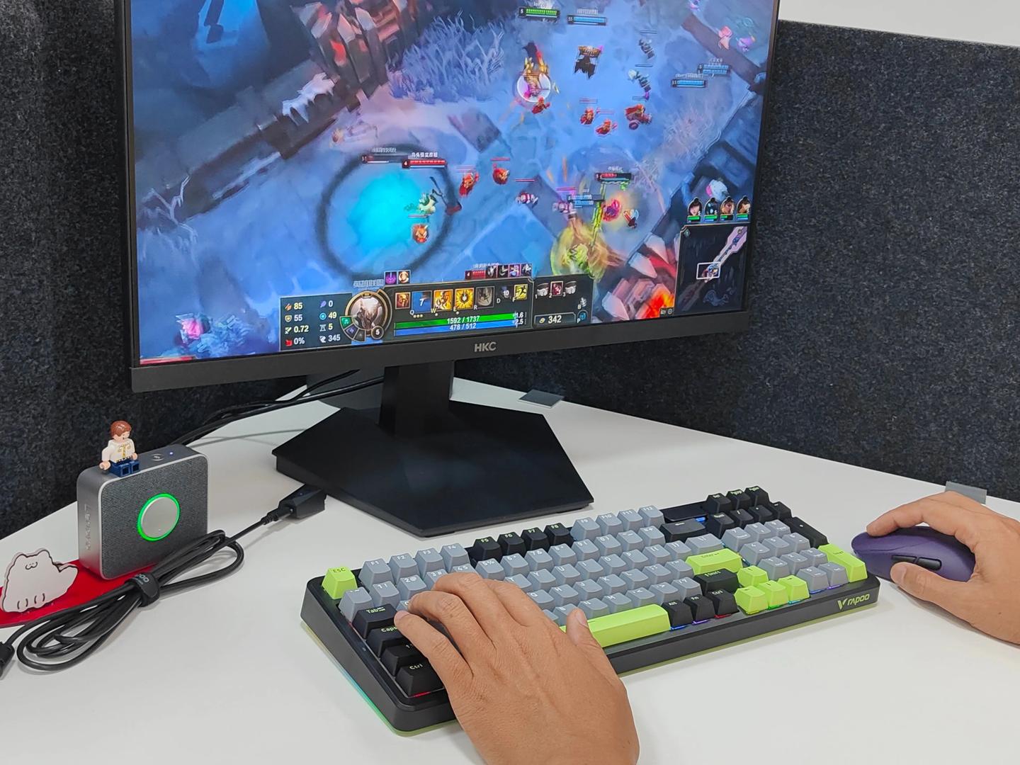 支持蓝牙 5.0、2.4G、有线三模连接,能在 5 台设备间闪速切换,连手机、平板都能用,2.4G 模式下 1000Hz 回报率很稳,打游戏完全感觉不到延迟。而且全键无冲的设计,同时按多个键也不会冲突,打游戏时连招不会掉。