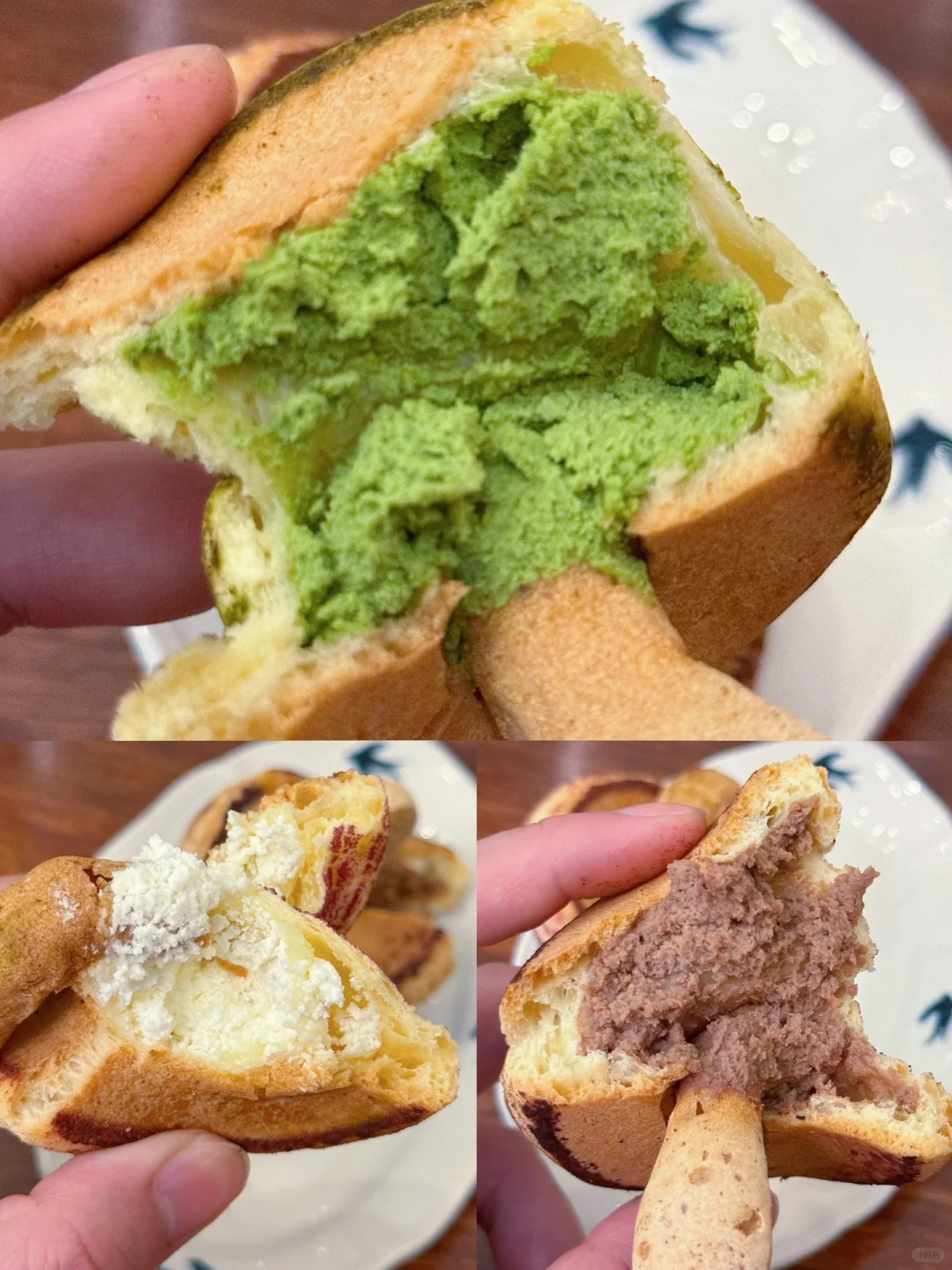 晚上好,补几个新品测评![偷笑R][偷笑R][偷笑R] 芋泥奶贝好吃到炸裂,哈哈哈哈,芋泥脑袋给出了大拇指评价! 明天可以吃!ps的蘑菇包惊喜,抹茶是纯苦的,榛子也是ju浓! 泽田的布丁跟之前的一模一样!