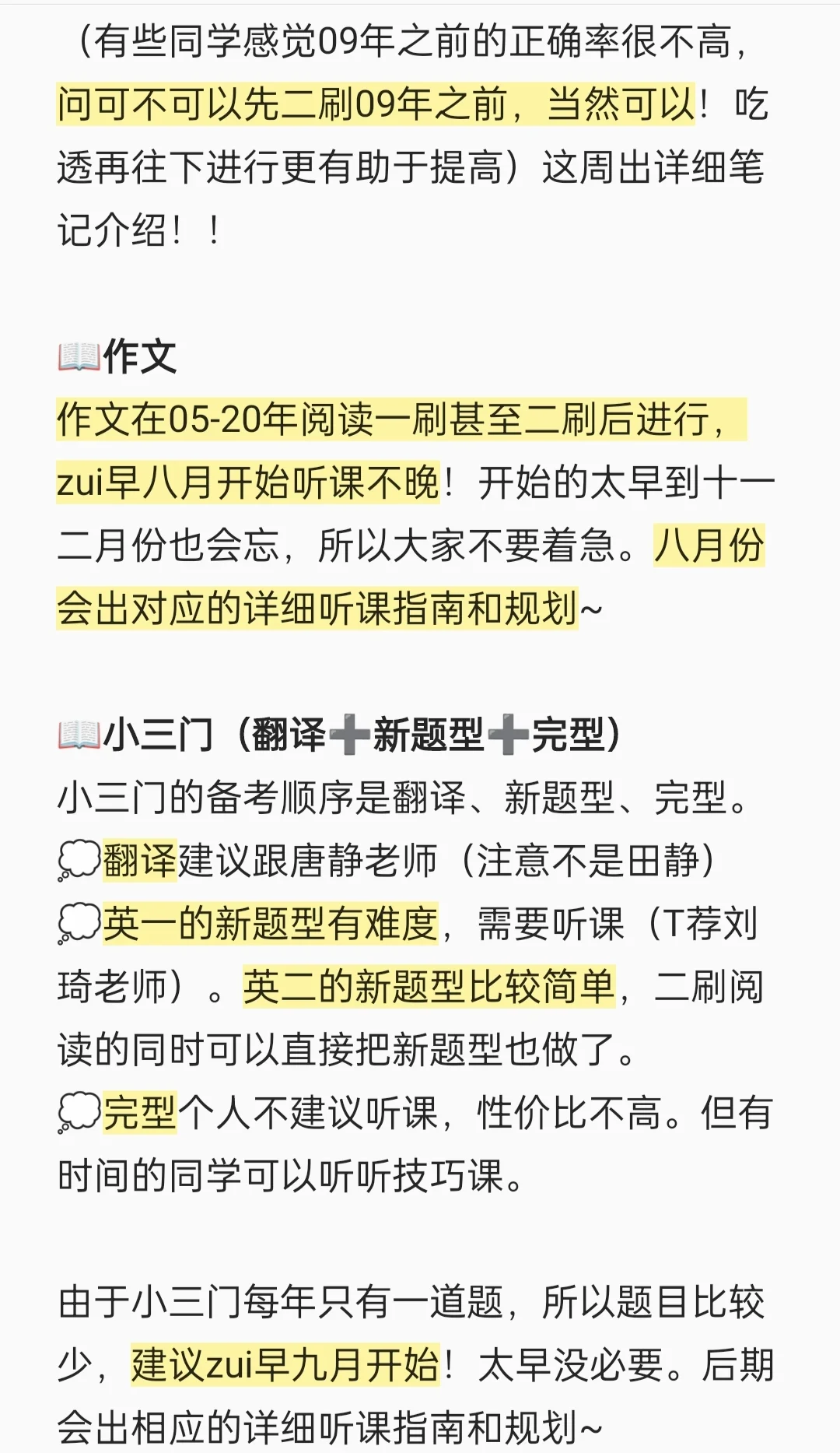小三门的备考顺序是翻译、新题型、完型。