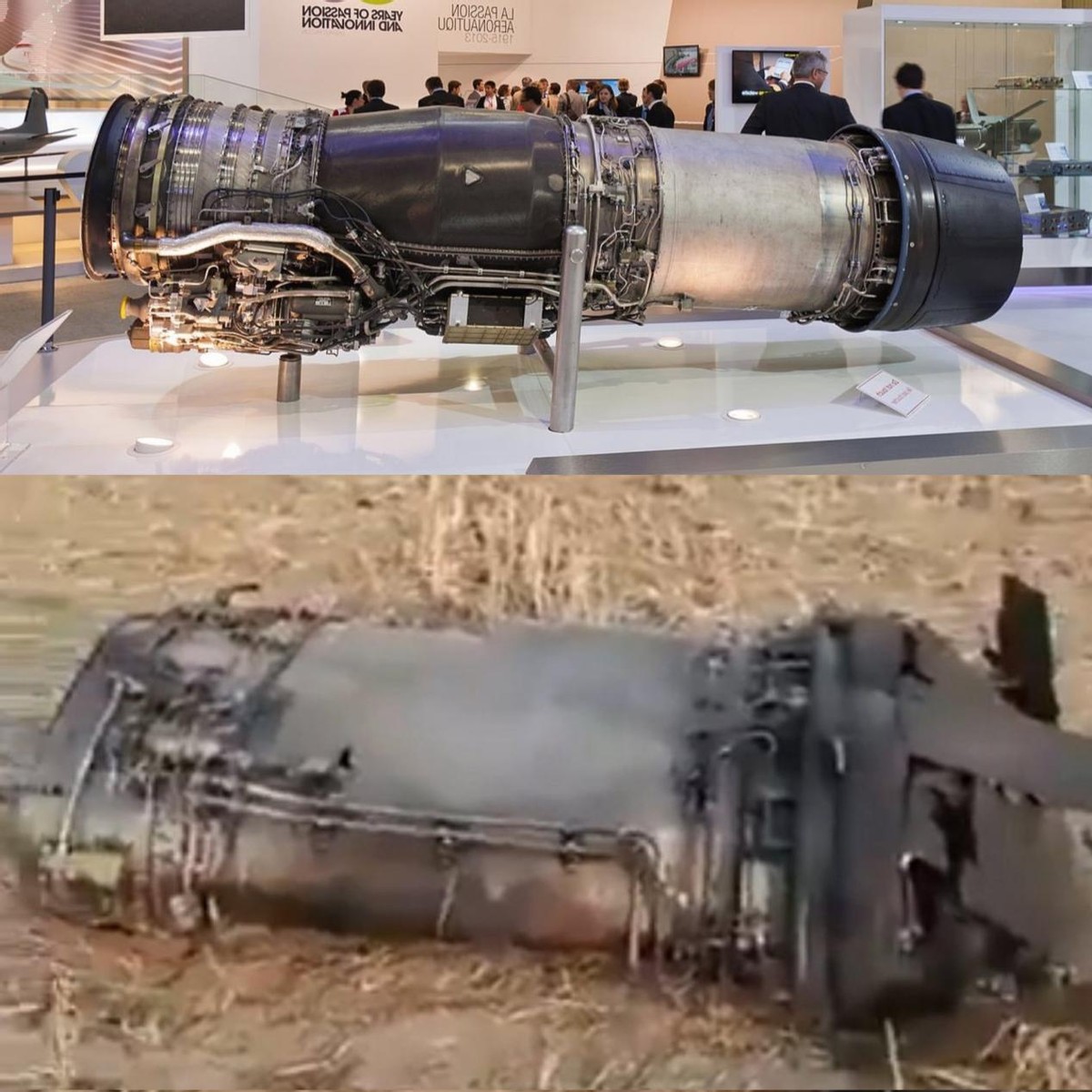 (上图为“阵风”配备的M88发动机,下图是印度境内坠落的发动机残骸)