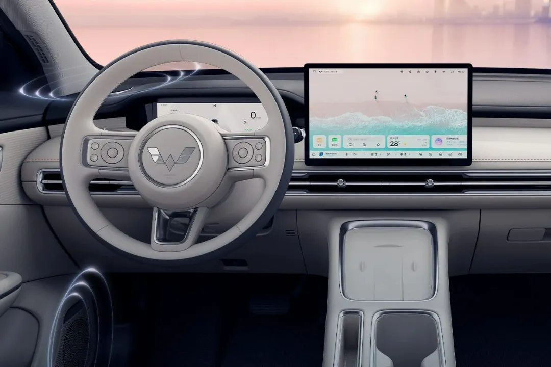 进入车内,内饰提供暖棕和柔白两种配色,搭配 3D 木纹工艺和环抱式中控设计。驾驶员座椅支持 6 向电动调节,前排座椅带加热功能,并采用双硬度海绵填充;车机部分采用 8.88 英寸液晶仪表与 12.8 英寸 2K 中控屏的组合,全系配备 6 扬声器。在智能化体验上,缤果 S 搭载行业首批基于 Android 13 的车机系统,运行流畅度和反应速度大幅提升。缤果 S 同时提供了 540° 全景影像系统,ESC、ABS、Autohold、上坡辅助等基础辅助功能均为标配。