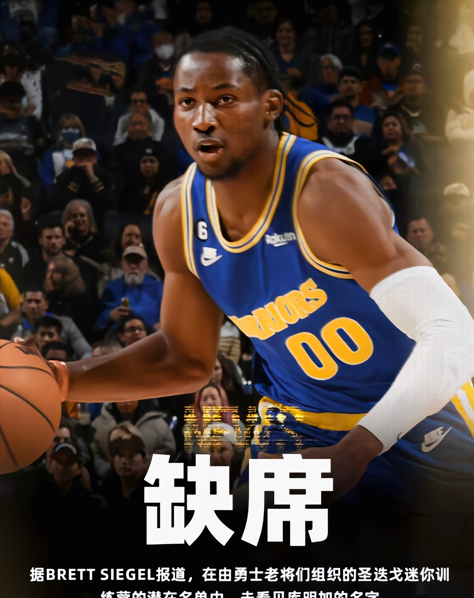 据勇士队记报道,勇士圣迭戈训练营即将开启,该训练营是由勇士老将们组织的球员主导型迷你训练营,并不受球队管理,也就是说任何被邀请的人都可以参加,而球队潜在名单中唯一缺席的球员是库明加。