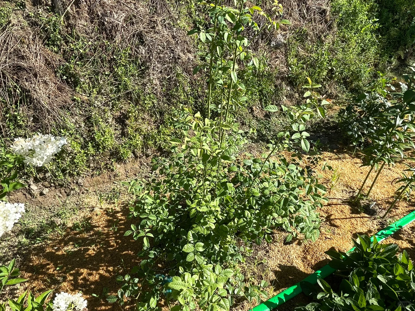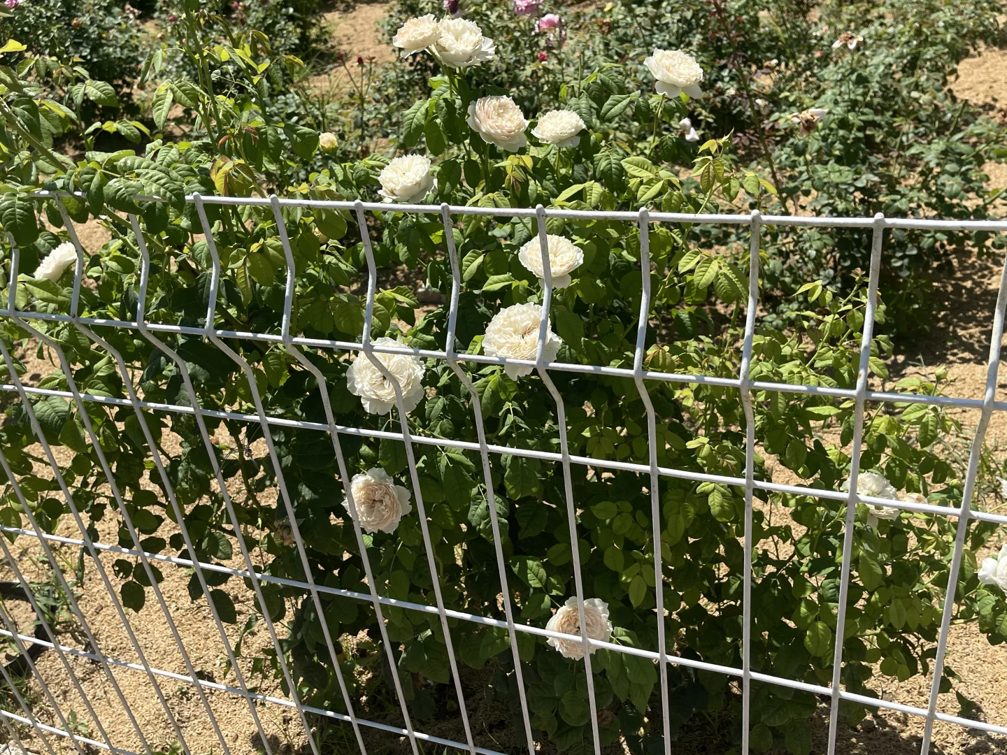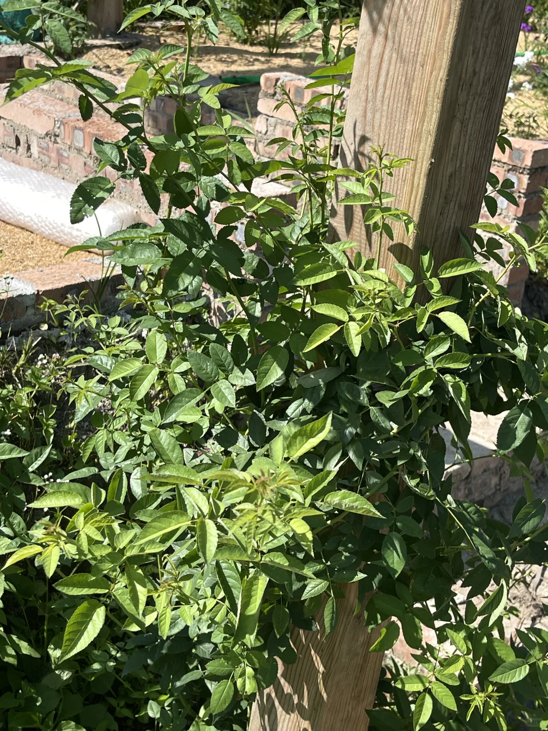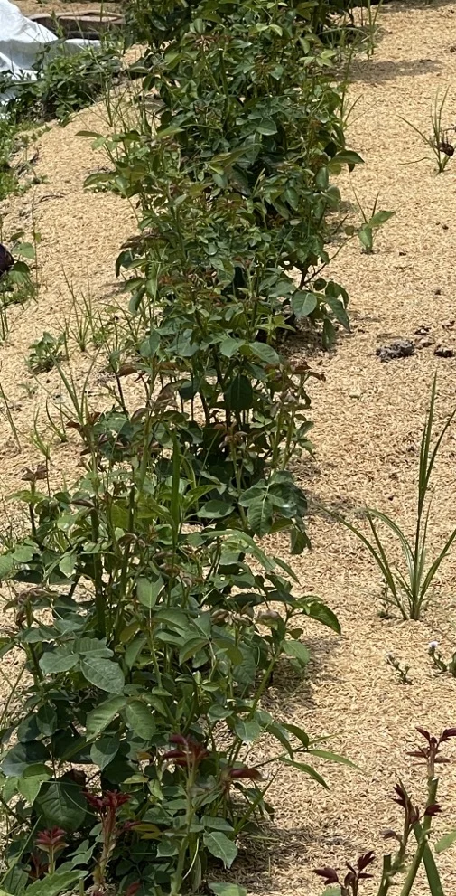 虽然真的晒死人,但是给足水地栽月季还是疯长。