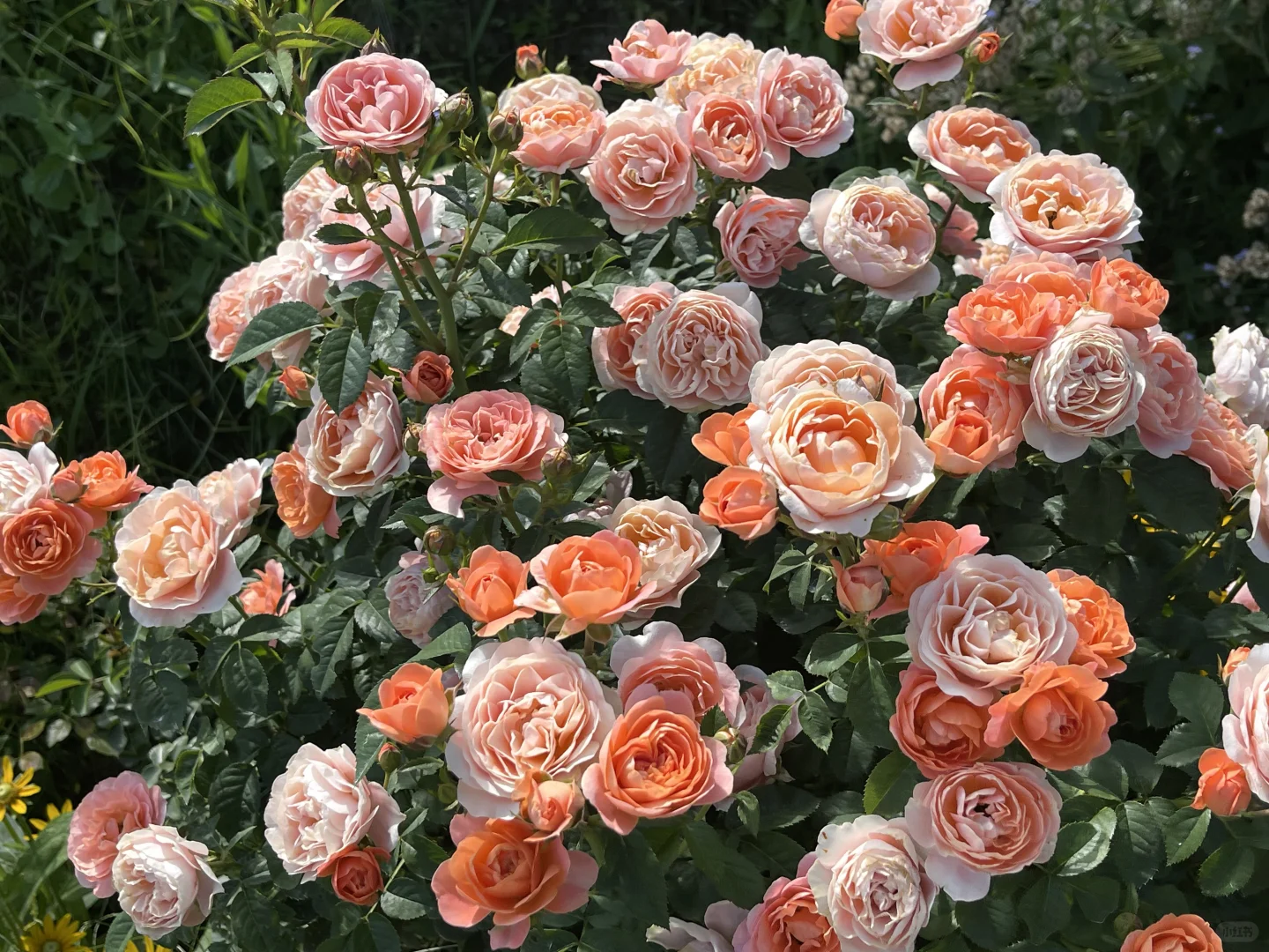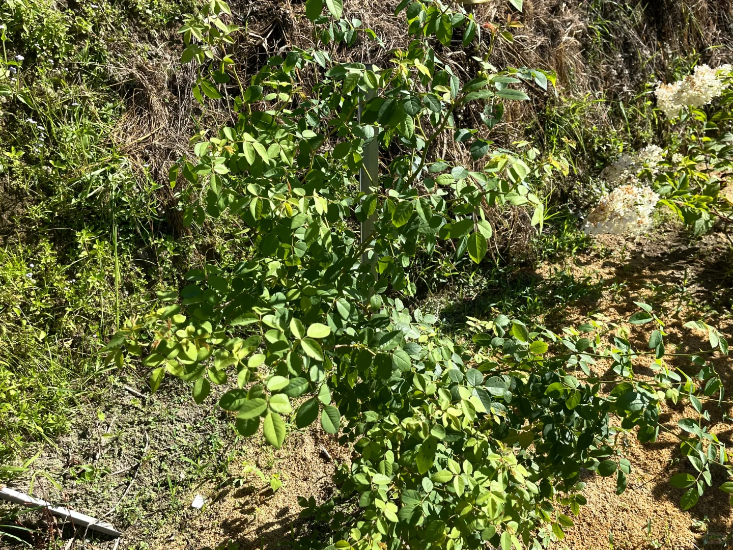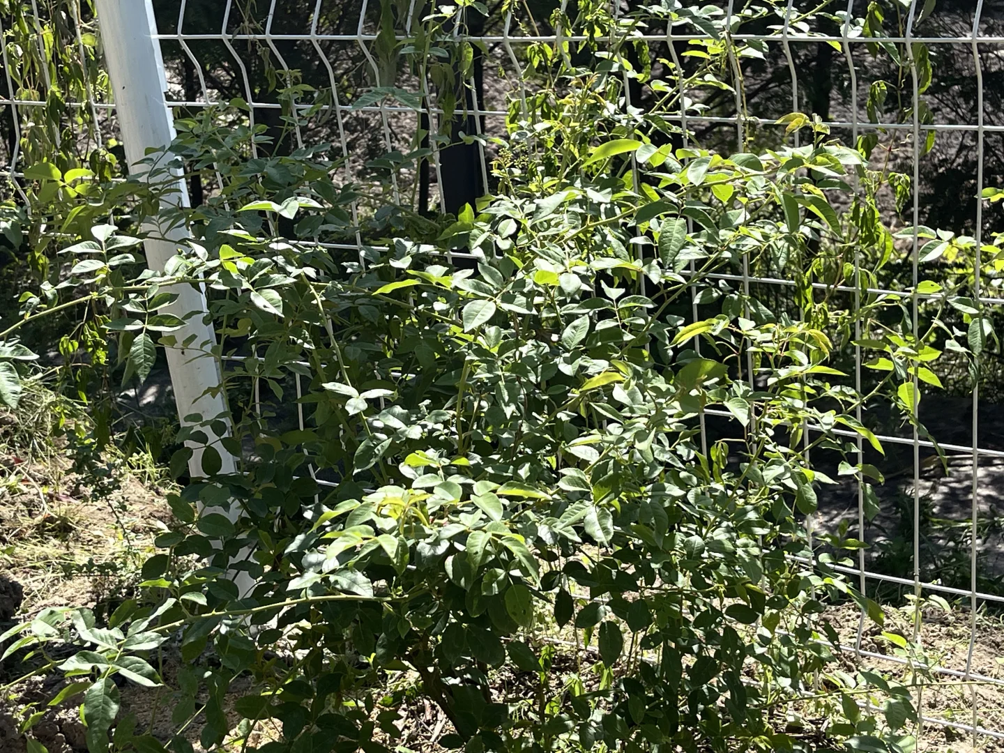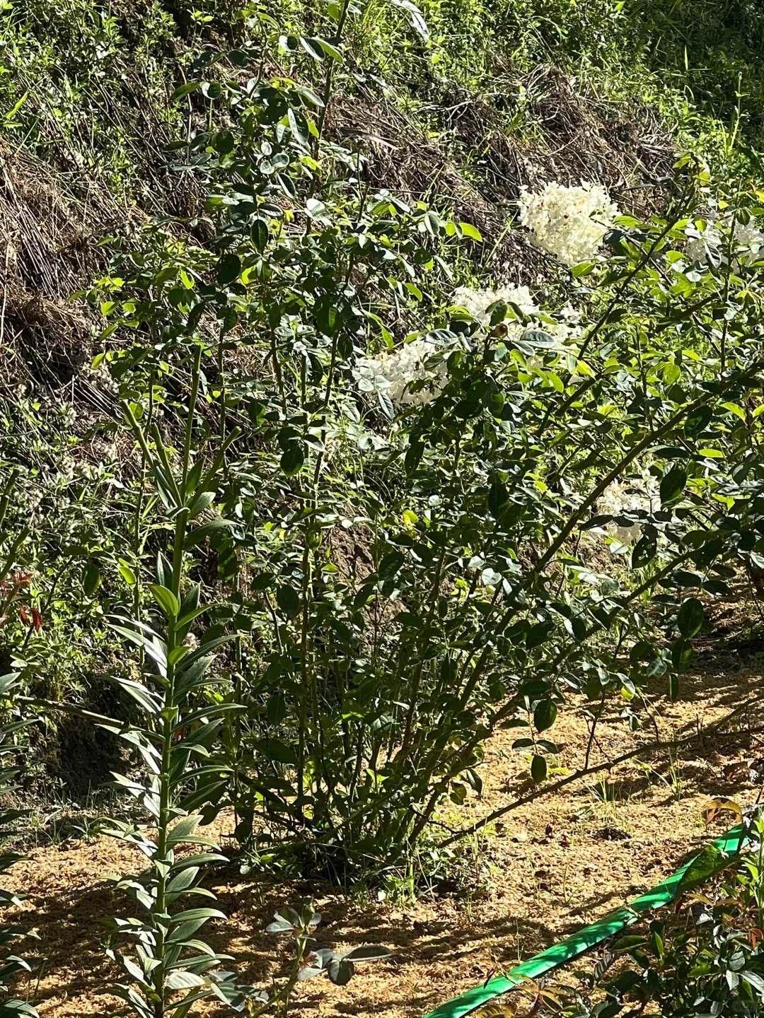 虽然真的晒死人,但是给足水地栽月季还是疯长。