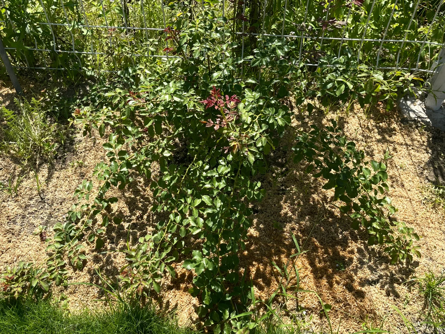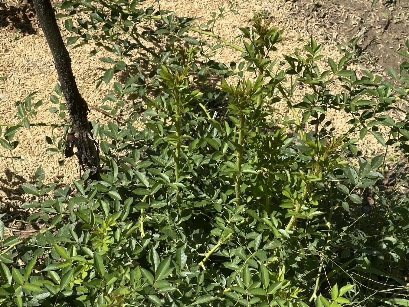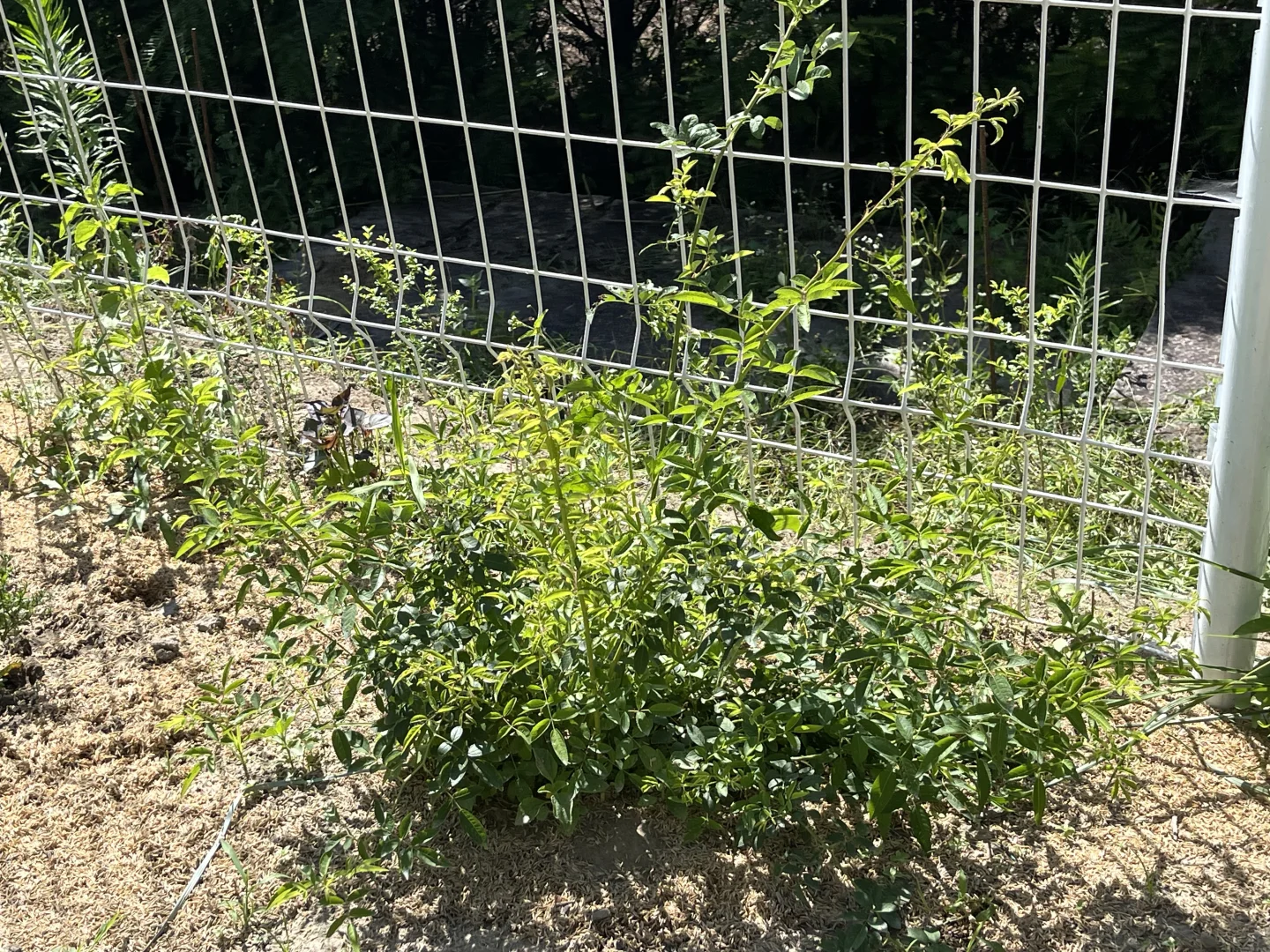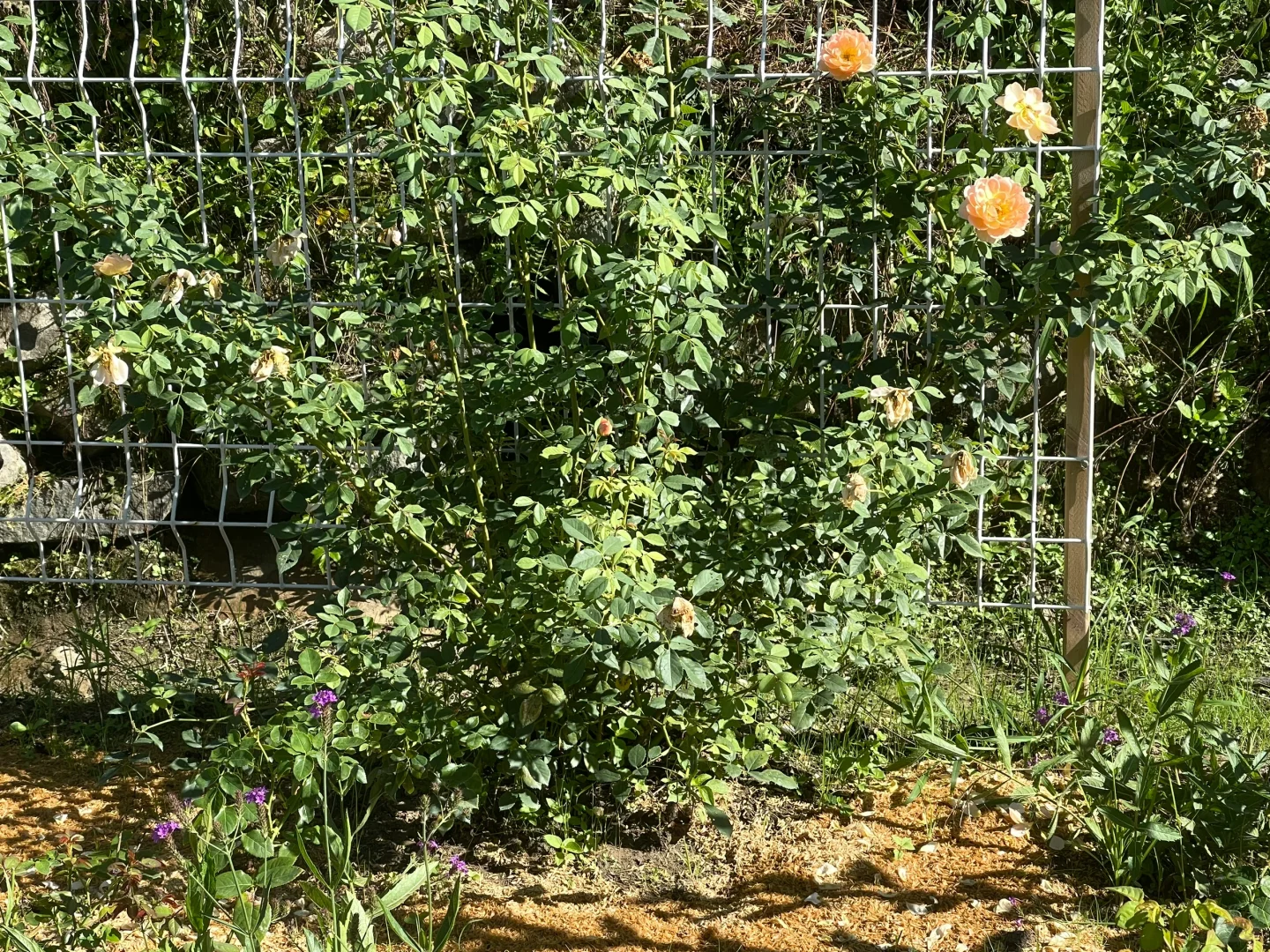 虽然真的晒死人,但是给足水地栽月季还是疯长。