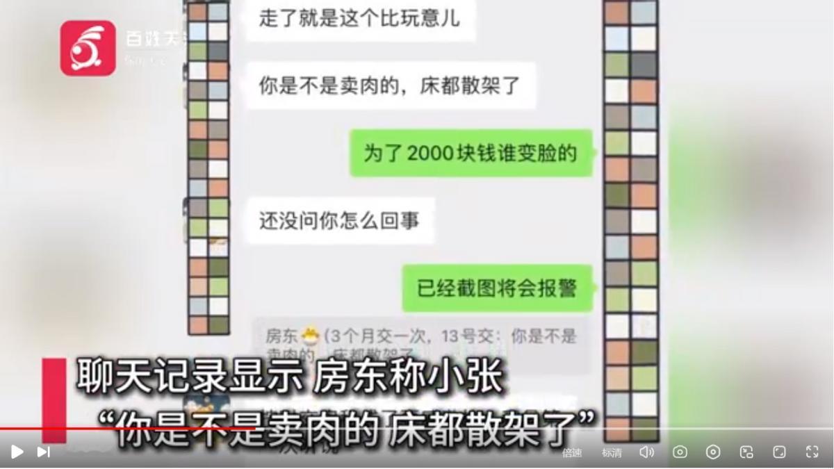 “你是不是卖肉的,床都摇散了”,湖北武汉,一漂亮女孩租了间房子,岂料在退租时,男性房东突然要扣除2000块押金,女孩不解,房东却说自己的床都散架了,由此怀疑女孩从事色情行业,女子听后觉得受到了奇耻大辱。 (信息来源:百姓关注2024.7.12 床都散了,我怀疑她从事不法职业,武汉一女生被房东拒退押金造黄谣) 小张是一名刚刚毕业的大学生,因为经济拮据,便在老旧的单身公寓里租了间房子,这里虽然条件差,但好在交通方便,价格也能接受,之后的几天里,她开始不断投递简历,寻找工作。 房东是姓王,是一个外表油腻的中年男子,靠收租过日子的他,总是不放过任何能扣钱的机会,是附近出了名的“周扒皮”。 一个月后,小张找到了一份满意的工作,退租当天,她提前打扫了房间,把桌椅归置的和来时一模一样。 可谁料,王先生一进屋,就开始挑三拣四,“这墙面、还有地板,怎么糟蹋成这副鬼样子!” “我来时,就这样啊,本来就不是新的” 面对小张的辩解,男人自知理亏,便继续往里走,来到了卧室。突然间,传来一句阴阳怪气:“你看看,这床都散架了,一个女孩把床睡成这样,你干啥去了?” 此话一出,小张顿时又羞又恼,然而下一秒,王先生的话,直接让她破防。“我的钥匙呢?连带这些损失,2000块押金,你一毛别想拿走!” 女孩清楚,这是对方在故意找茬,墙上、地板上的水渍明明是马桶漏水导致的,为此她曾多次请求派人维修,结果王某全都置之不理。 无奈,她只好拿着拖把,一遍遍清理干净,想不到临走时,还被倒打一耙。至于钥匙,打从租房的那天起,就一把,根本不存在丢失一说。 面对小张的据理力争,王先生故意侮辱道:“装什么纯洁,就凭你把床睡散架,足以证明你干见不得人的勾当,要是正经人,能把床糟踏成这样?” 对于房东的百般羞辱,女孩气的眼眶都红了,她死死攥住拳头,表示你再不正经污言秽语,信不信我告你诽谤! 事后,女孩将此事发到了网上,本想着发泄一通,竟不想有了“意外收获”。据曾和老王打过交道的人爆料,这家伙是出了名的道貌岸然,平时最喜欢克扣押金,甚至为此,捏造各种无耻理由,在当地租房圈,早就臭大街了。 与此同时,网友们对小张的遭遇,更是深表同情。有人建议她,走法律途径维权,拿回自己的2000块血汗钱。还有人说,房东的行为已经对小张造成了严重的精神伤害,完全可以控告对方,索取赔偿。 其实,在实际生活中,类似小张这样的遭遇还有很多。由于近年来成千上万的大学生进城打工,因无力承受高昂的房价,租房过日子就成了唯一选择,而有时候,黑心房东们往往会借机扣下各种押金,甚至为此,不惜恐吓、辱骂租户。 眼下,要想完全杜绝此类现象,单靠网友们的力量是远远不够的。最直接的办法,就是建立完善、科学的租赁规则,在对押金的收取、退还上标注清晰的规定。对于那些不守规则的黑房东,要进行严厉惩罚,保护租客的合法权益。 甚至,还可以效仿对付老赖的办法,建立“房东征信系统”,将王先生这类的害群之马列入黑名单,从源头整顿租房市场,还广大租客一个安全、阳光的环境!