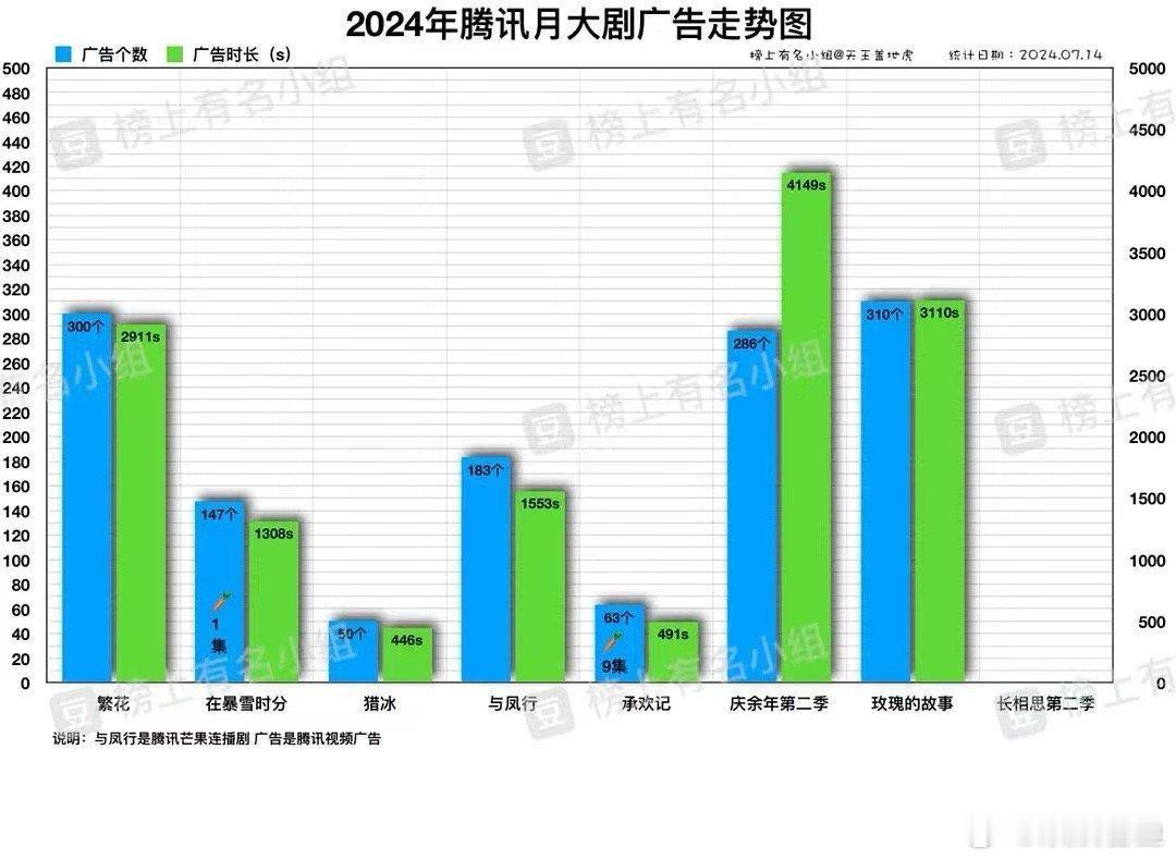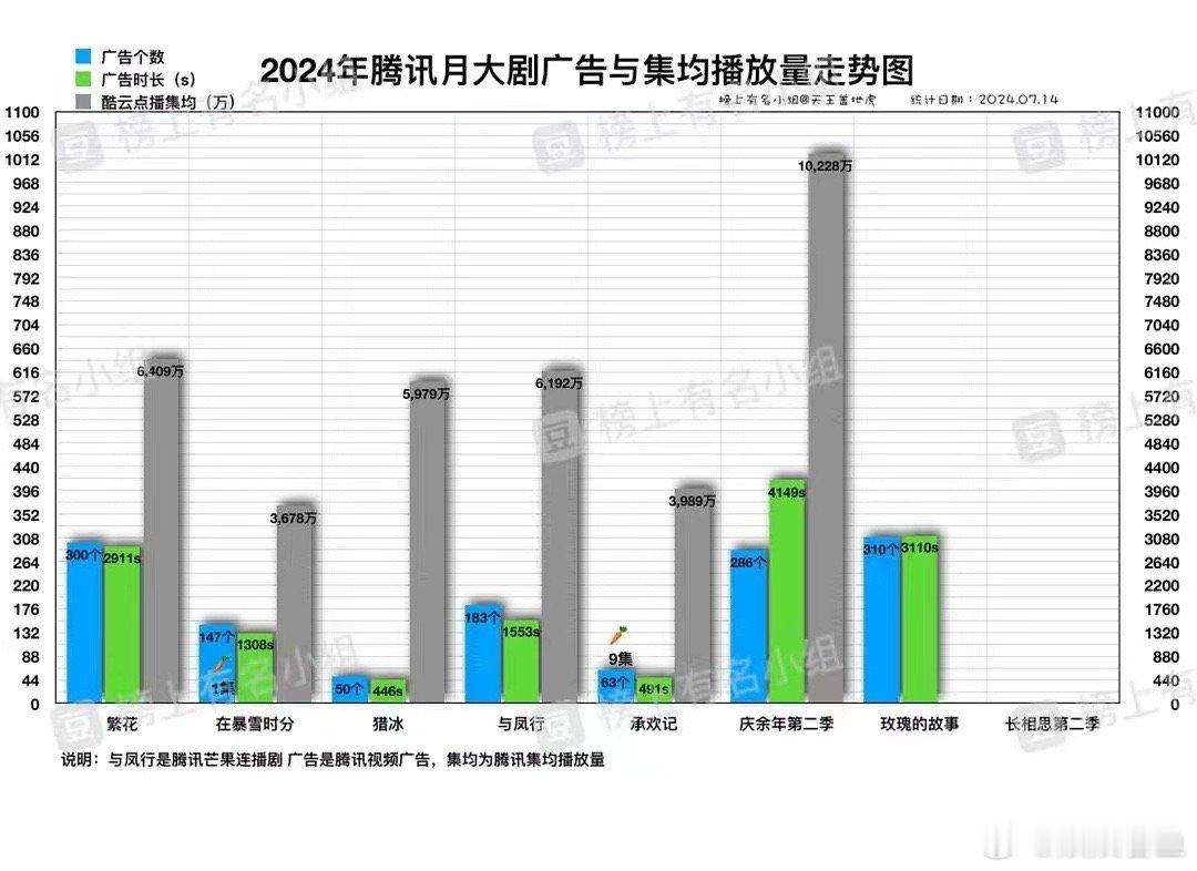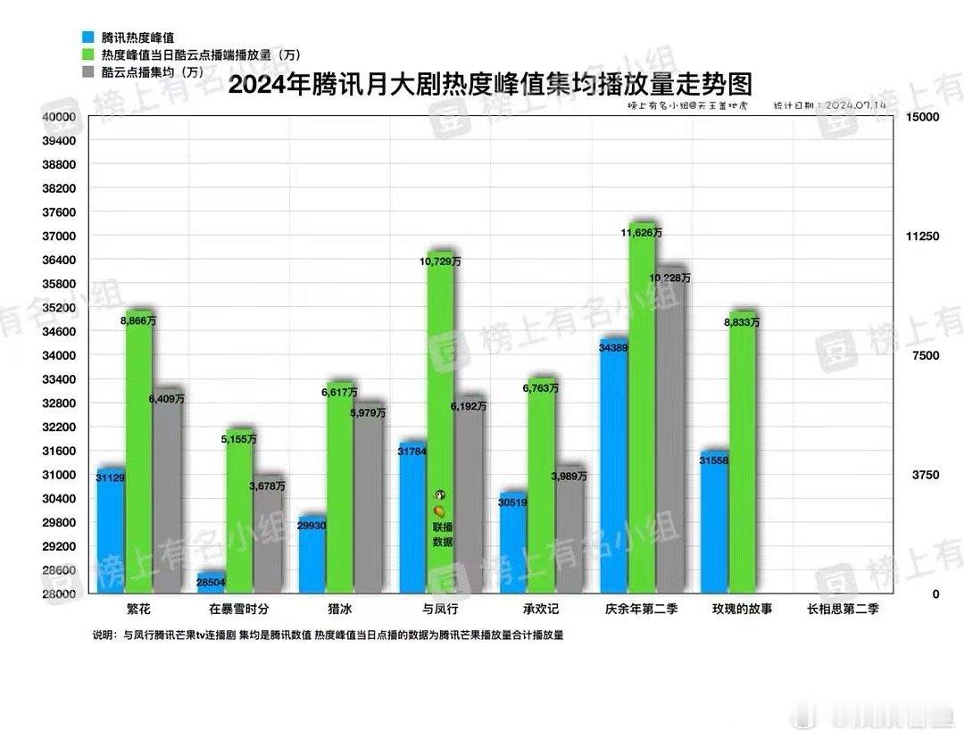 2024年腾讯月大剧播放走势图。
