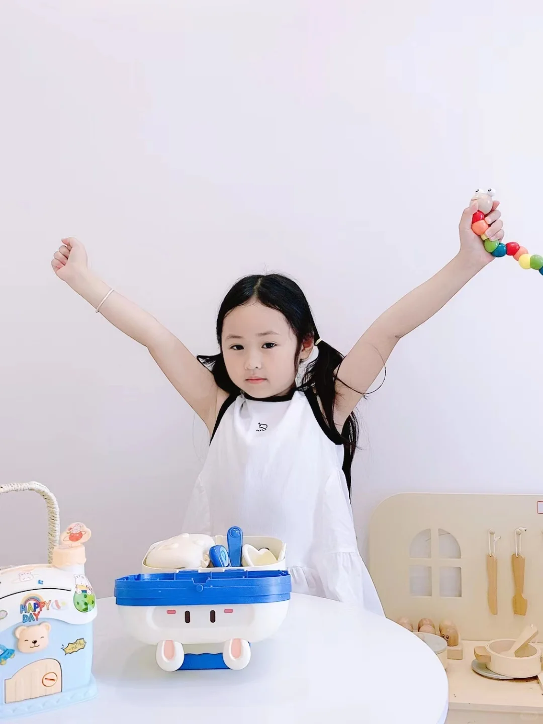 第4.5天,偶尔出现一两次低烧,体温基本正常了,我感觉宝宝已经恢复得差不多了,但还是继续吃💊,但是大白说这个💊要吃够5天,预防病🦠卷土重来。[鼓掌R][鼓掌R]