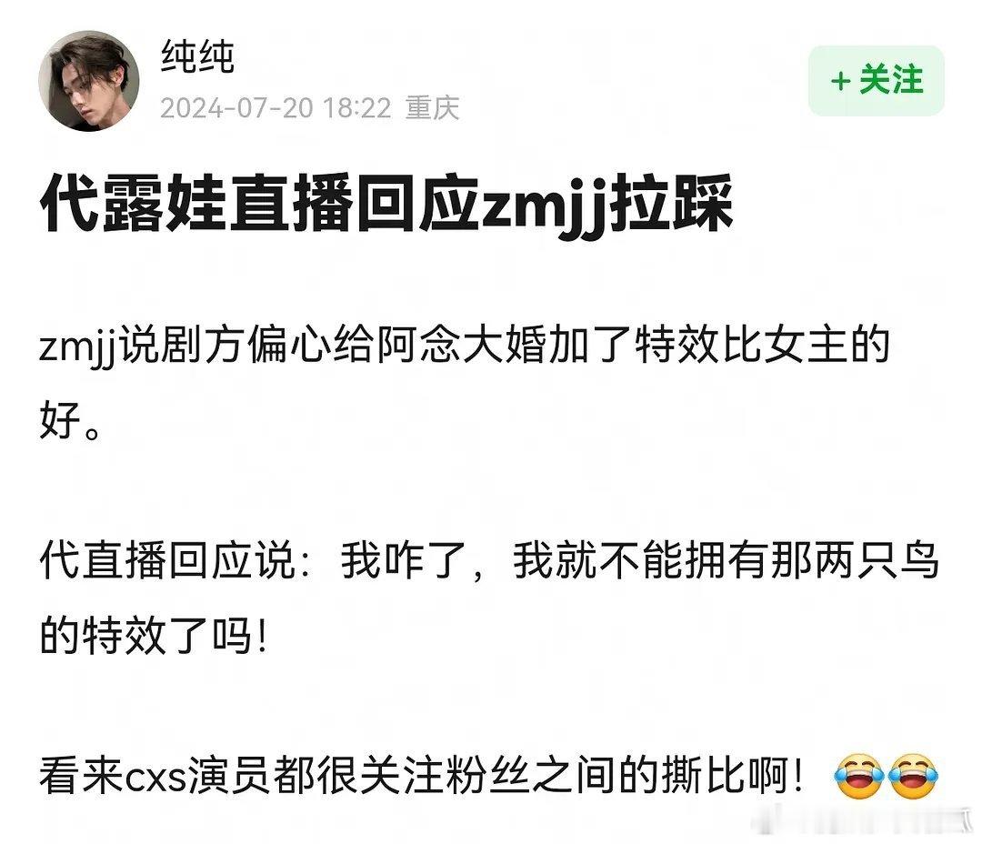 感觉虽然长相思把杨紫给祭天了,但是也没有必要拉踩无辜人员吧,毕竟代露娃的戏份也不多,就两只鸟的特效还让大家给骂了