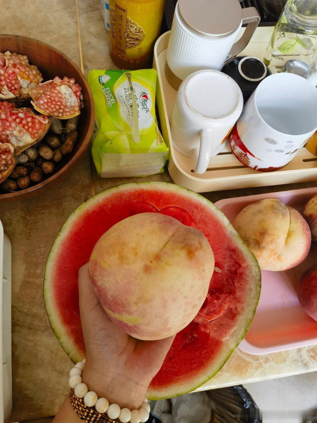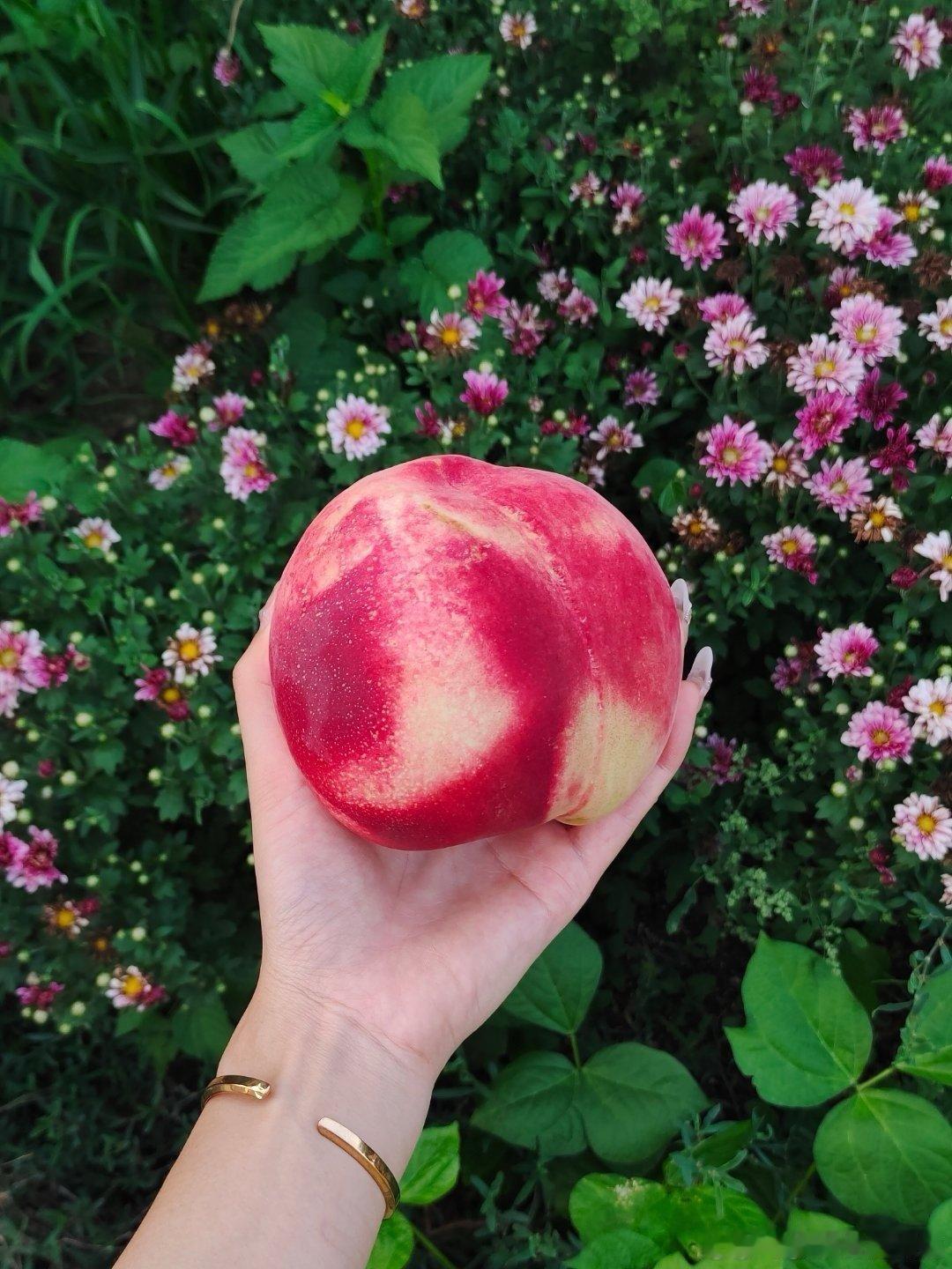 #山东的桃子已经离谱到这种程度了吗#原来这就是山东的桃子,它的大小就已经给了我震撼一击,看起来也是红彤彤的,一定是非常甜的