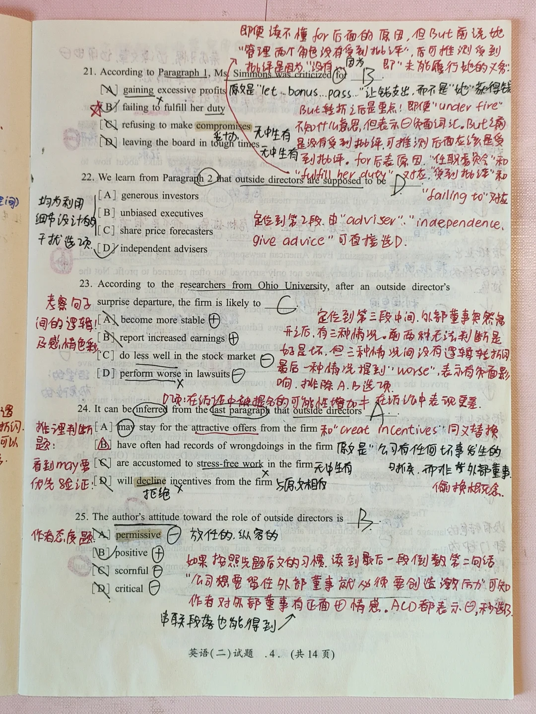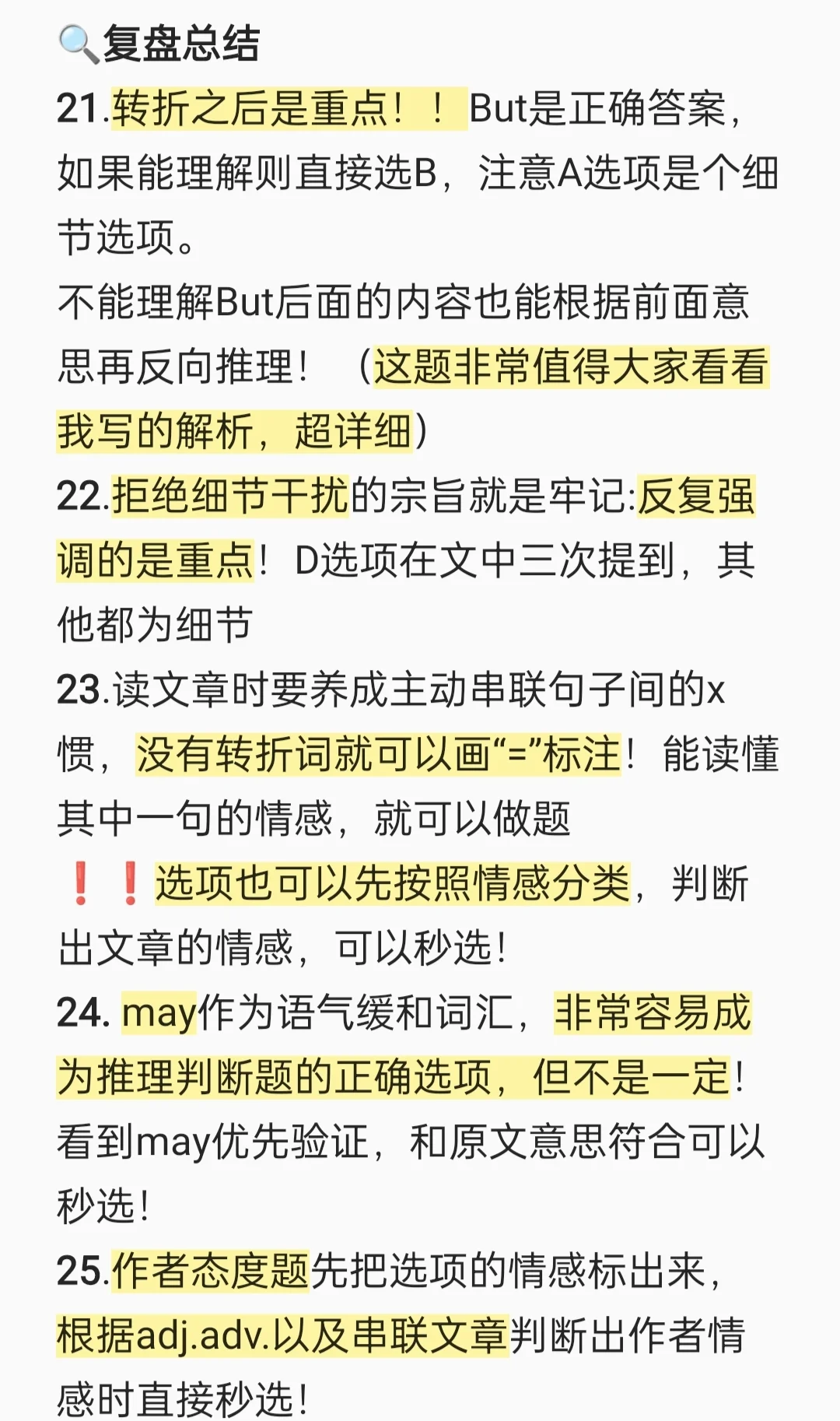 [二R][三R].读文章时要养成主动串联句子间的x惯,没有转折词就可以画“=”标注!能读懂其中一句的情感,就可以做题