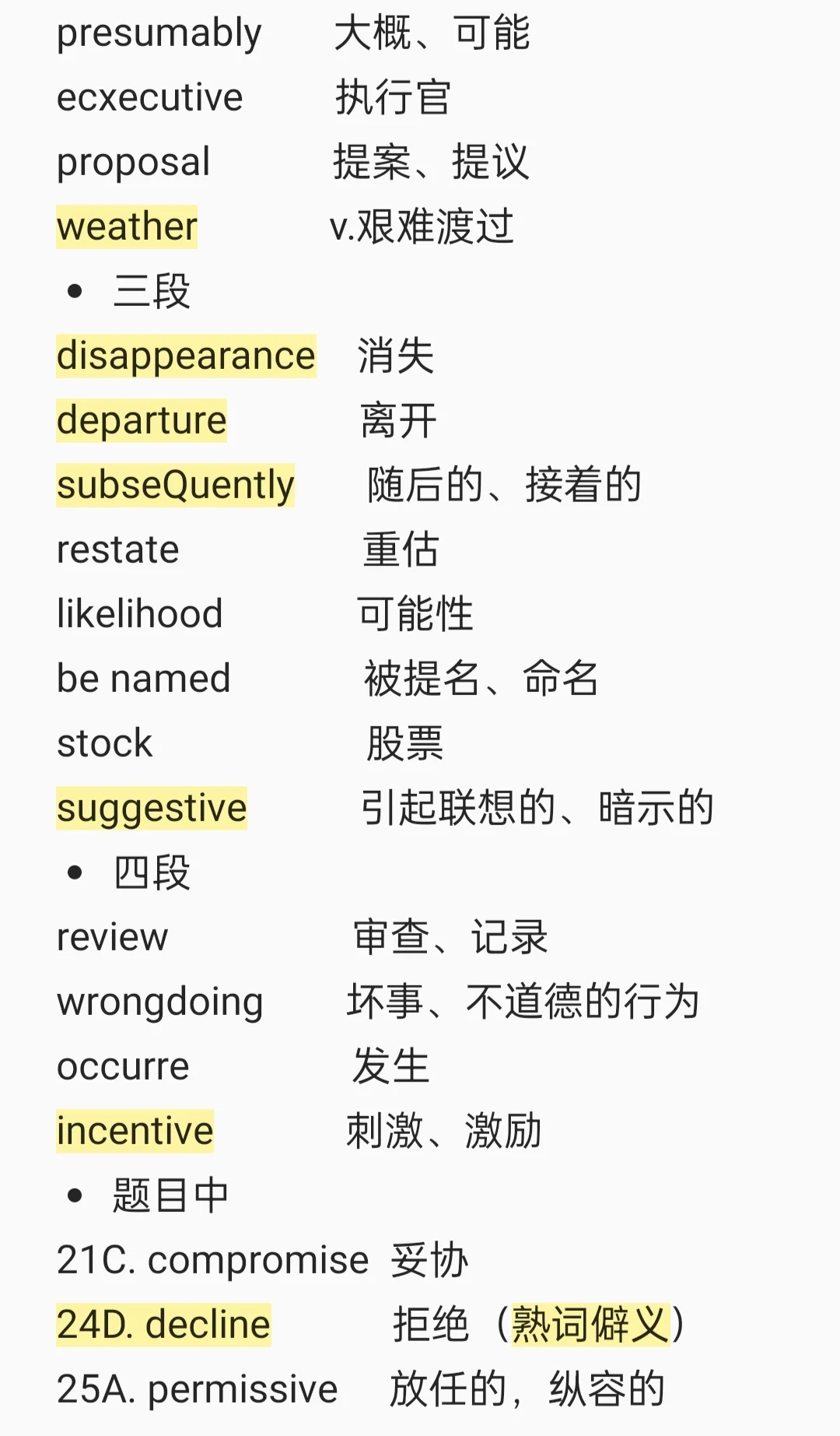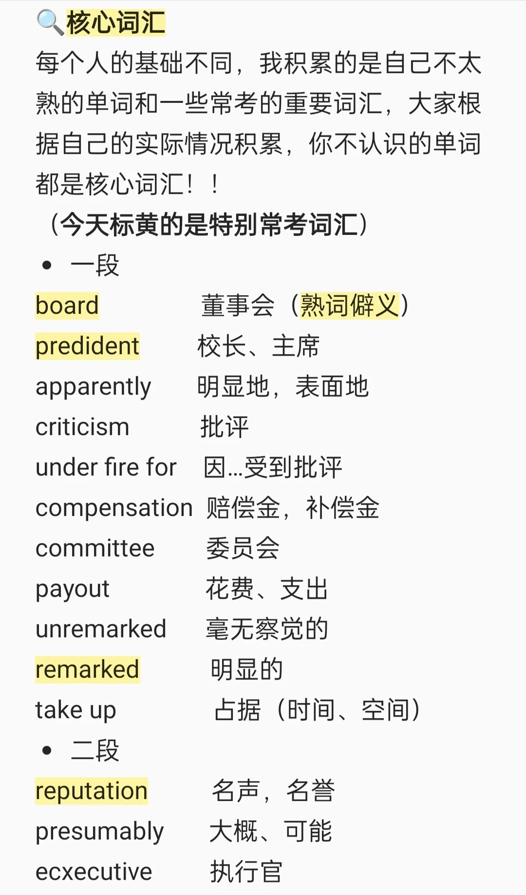 (今天标黄的是特别常考词汇)