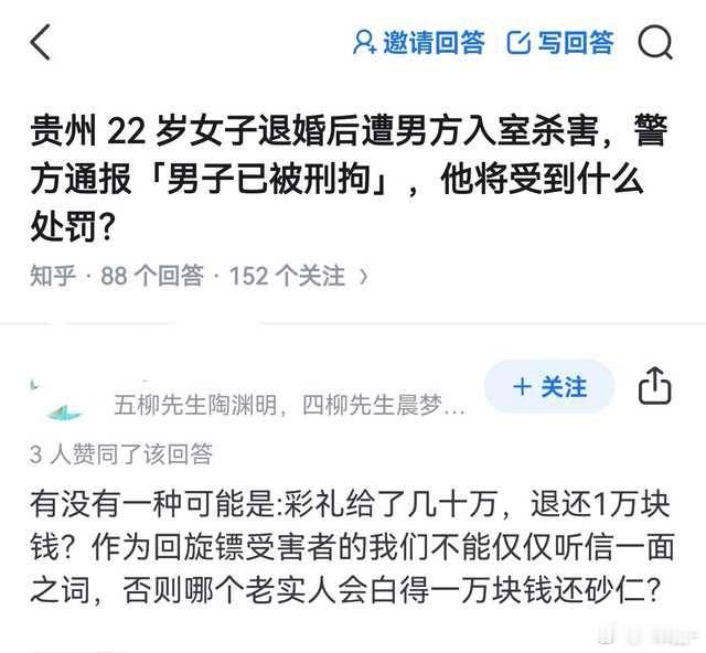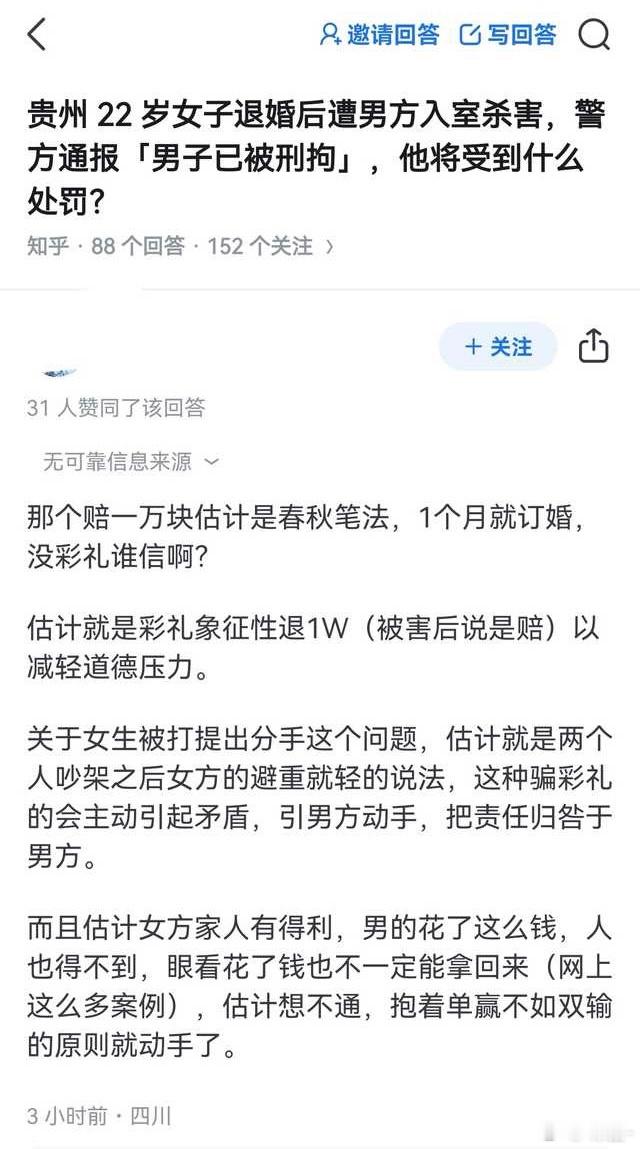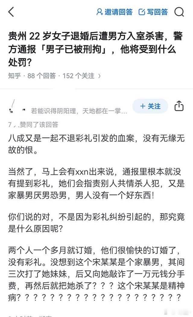 雷蒙斯基 2 2024-07-26 13:22 不是彩礼,这男的不是东西,女孩子很盲目就订婚了,还没给彩礼,发现这人很不是东西,想取消婚约分手,男的不干,要女的出媒金。一开始女孩同意给他5000,男的威胁女孩,最后女孩息事宁人给了一万,但男的还是趁早上溜进去杀害女孩。这人就是坏种,女孩死的冤枉