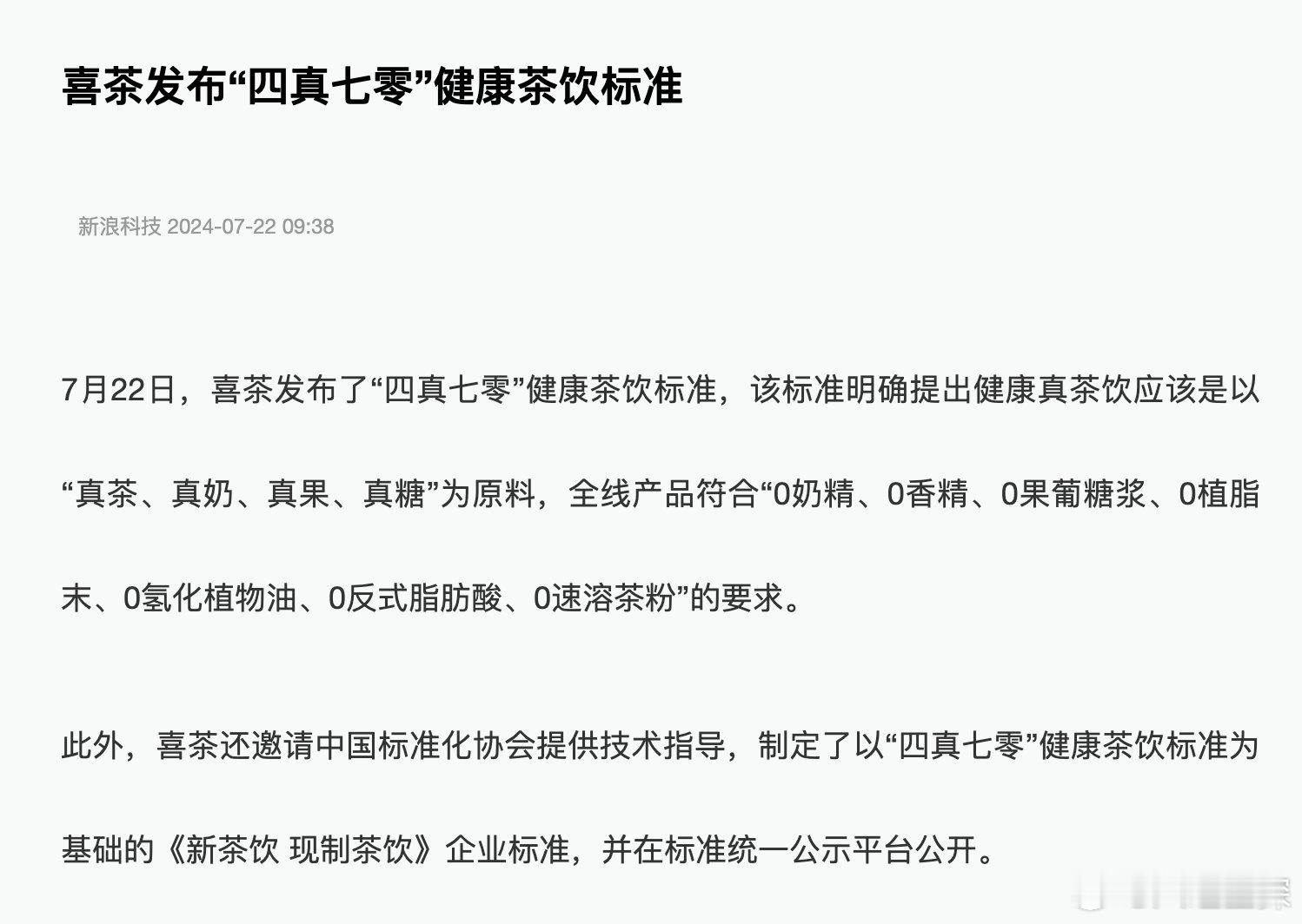 #喜茶公布4真7零健康茶饮标准# 喜茶一直以来都是健康奶茶的代表的,而且对于我们