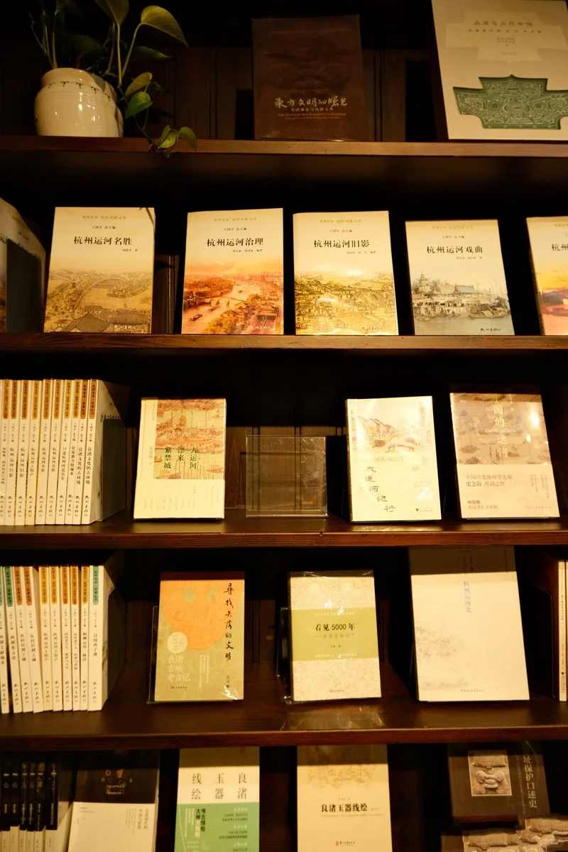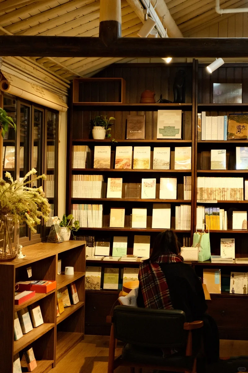本想逛逛大运河的夜景,却不料被这家书店古朴的外部装修吸引,作为爱阅读的人,毫不犹豫推门而入~ 书店一共分两层,装修很复古,木质环绕,书店摆放着很多关于杭城历史、文化方面的📚,还有一些精美手作。 二楼的人比较少,相对幽静,选个临窗座位,手捧图书,再点一杯醇香的咖啡,边读书边欣赏窗外运河美景也是惬意的很哦☕