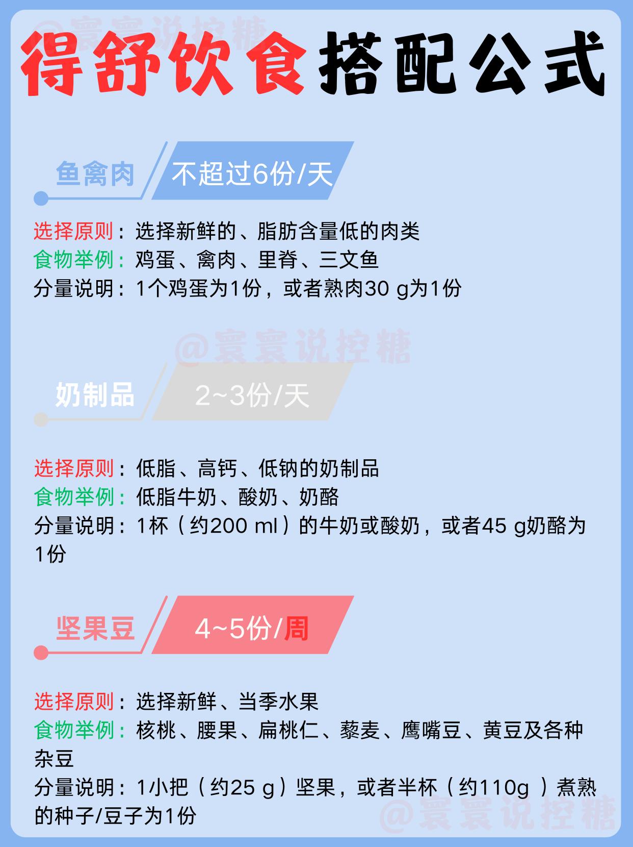 健康饮食模式~得舒饮食‖附得舒饮食食谱。谈到健康饮食模式,不得不提到DASH饮食即得舒饮食,又称“↓压饮食” ✅ 得舒饮食的基本理念是什么? 🔹高膳食纤维、高钾、高镁、高钙、少盐、少糖、增加优质蛋白质,减少饱和脂肪酸,是得舒饮食的核心原则。 🔹同时鼓励身体活跃,增加运动。 ✅ 得舒饮食都怎么吃? 一份经典的得舒饮食,由5大元素组成, 分别是全谷物、蔬菜水果、低脂乳制品、白肉类、坚果类。 🔹谷薯类:推荐每天6~8份谷薯类食物,其中至少2/3以上的全谷类食物,2022版《中国居民膳食指南》也强调
